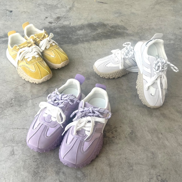 ボリュームソールスニーカー シンプルながら存在感のあるフォルムと2本の異なる靴紐が特徴の厚底スニーカーです。 厚底で脚長効果を発揮し、さりげなくスタイルアップを叶えます。 カジュアルスタイルにも、きれいめスタイルにも合わせられコーディネートの幅が広がります。 しっかりとした作りと快適な履き心地で、長時間の着用でも安心して過ごせます。 ・商品番号:090-801 ・カラー:イエロー、パープル、アイボリー ・サイズ:22.5〜24.5 ・ヒール:3.5cm ・素材:合成皮革 ・製造国:中国製 ■ お手入れ/取り扱い注意事項 ・水洗いは避け、柔らかい布で拭いてお手入れしてください。 ・直射日光の当たる場所での保管は避け、通気性の良い場所での保管をお勧めします。 ■ 発送・注文に関する情報や注意事項 ・ご注文受付後、通常3〜7日以内に発送いたします。 ・在庫更新のタイミングにより、完売の場合があり、ご注文をキャンセルさせていただくことがございます。ご了承ください。 ・在庫には限りがございますので、品切れの場合は予めご了承ください。 ■ その他の情報や注意事項 ・製品の特性上、素材に若干の色ムラが生じる可能性がありますのでご注意ください。 ・返品・交換は原則不可とさせていただいておりますので、慎重にご確認の上ご注文ください。 ご不明点はショップのお問い合わせからお気軽にお尋ねください。
