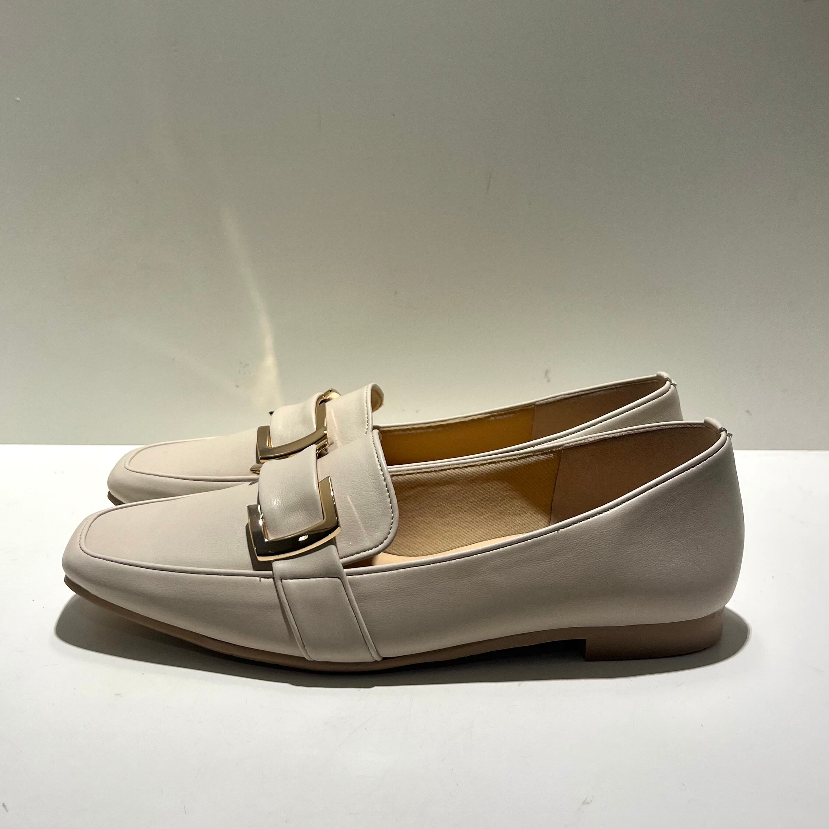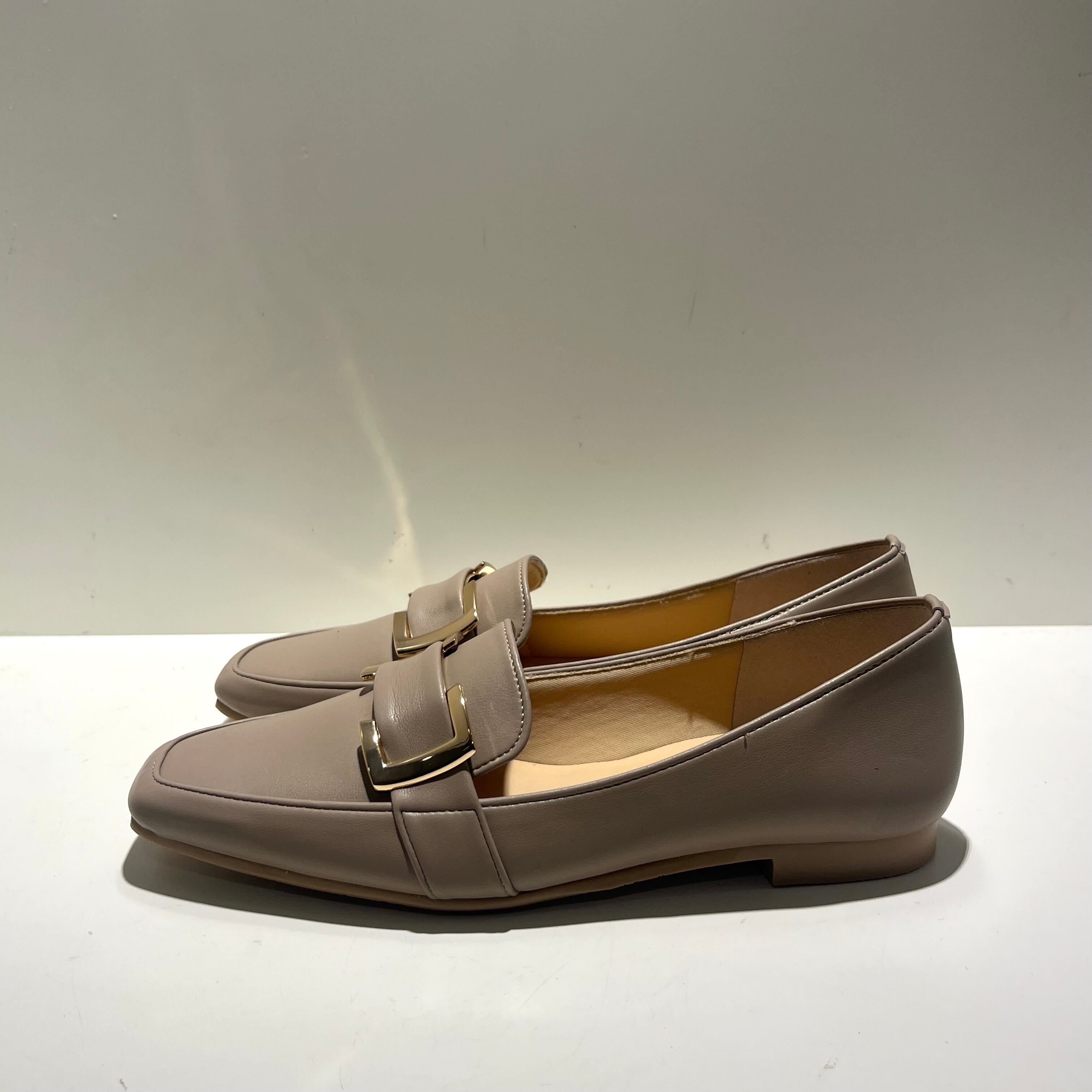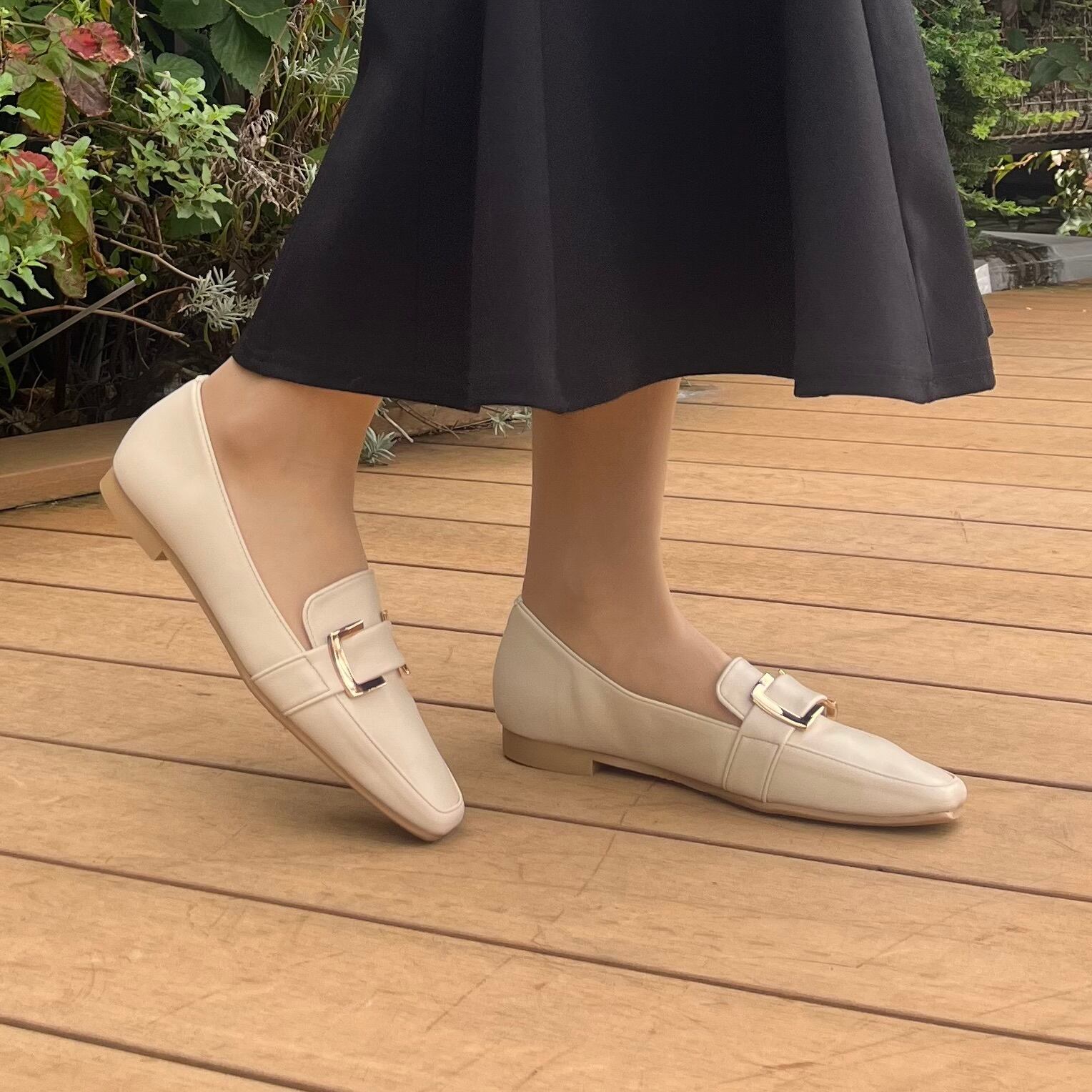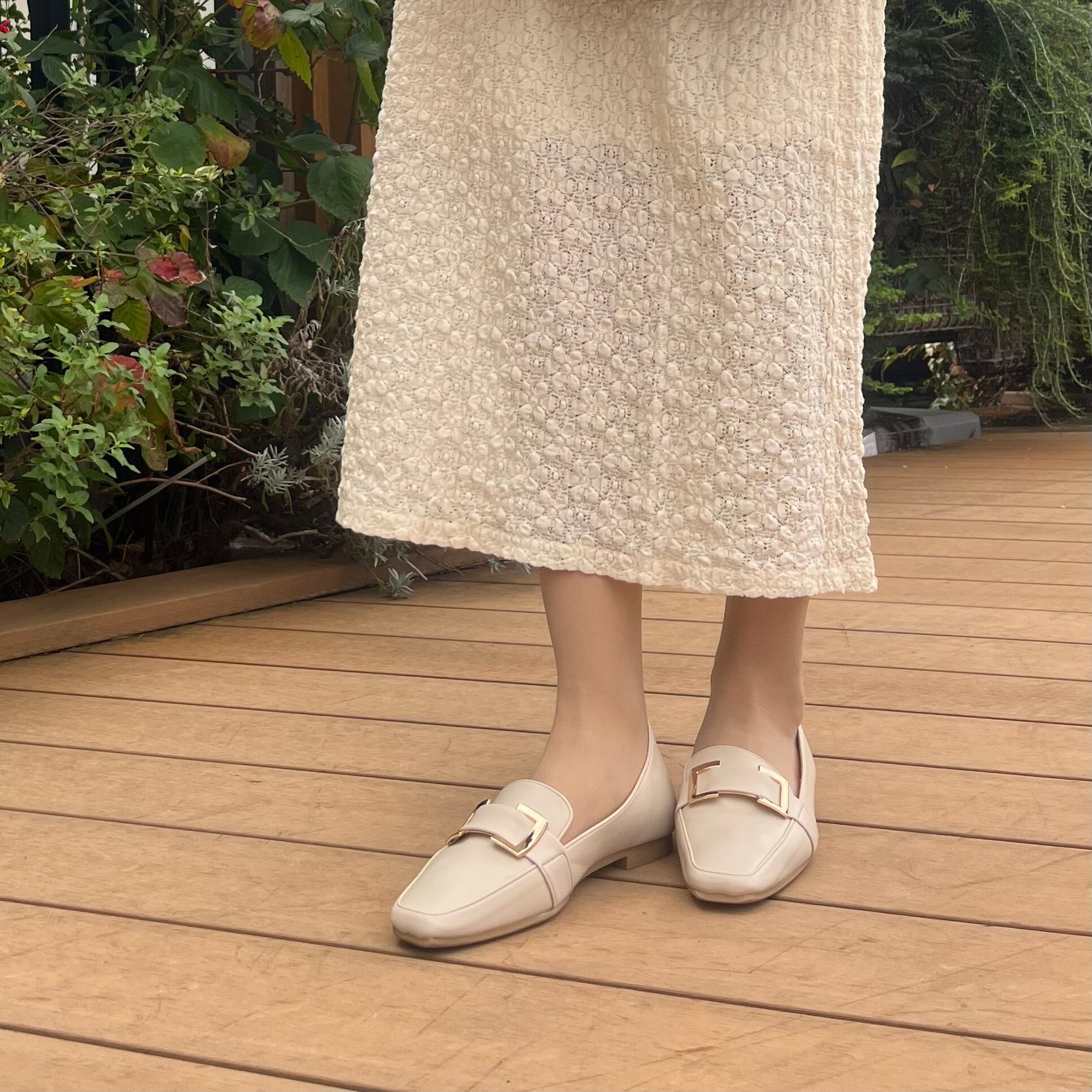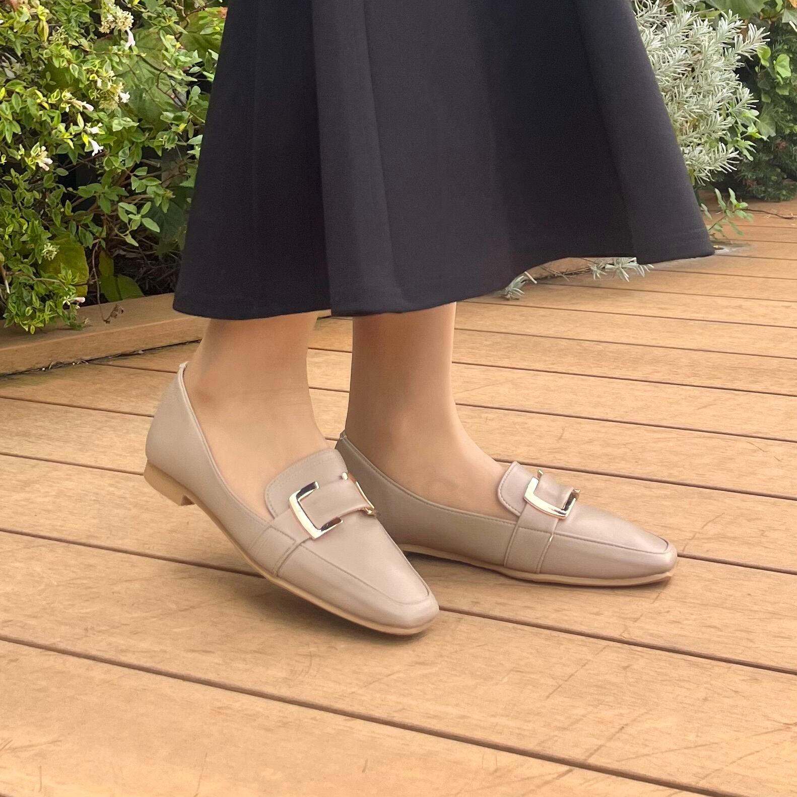 エレガントなスクエアバックルが魅力のデザインで足元にアクセントをプラスします。上品なシルエットと快適な履き心地を両立しており、デイリーユースから特別なシーンまで幅広く活躍します。柔らかい素材を使用しているため、長時間の着用でもストレスを感じることなく快適に過ごせます。そして、しっかりとしたインソールが足を優しく支えます。