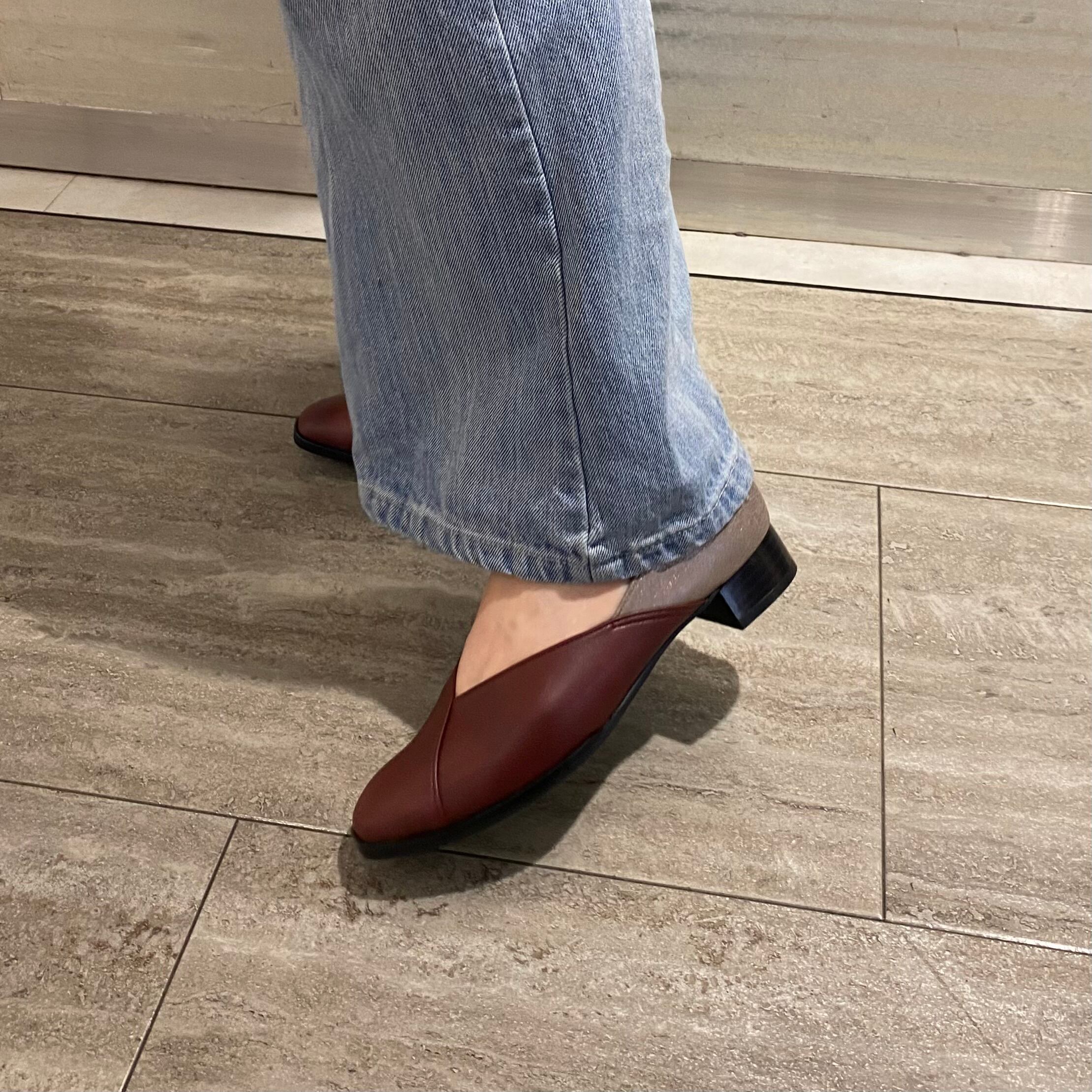 スクエアトゥコンビフラットパンプス