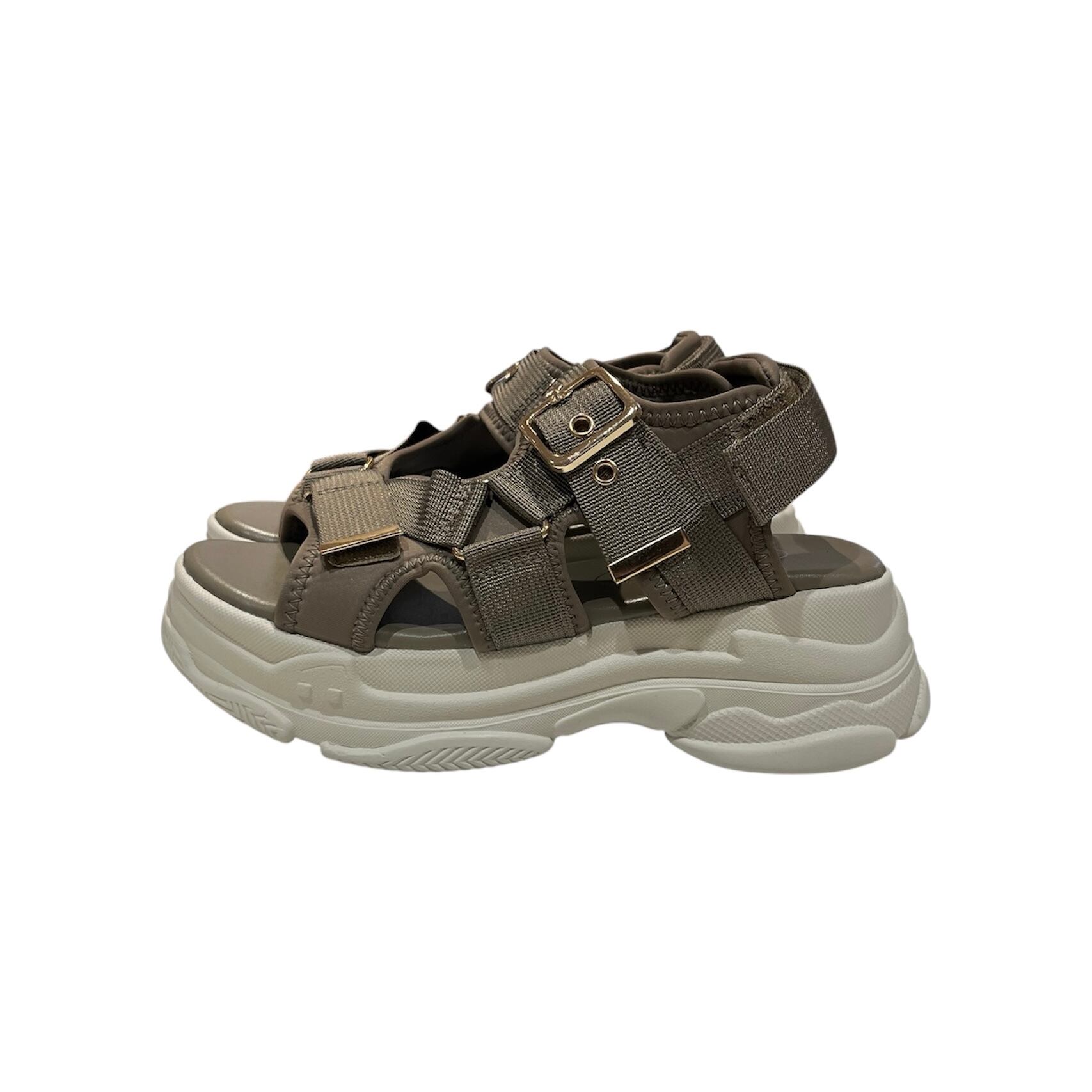 洗練されたデザインと機能性を兼ね備えたクロスベルトスポーツサンダル。ゴールドの金具がアクセントとなりスタイリッシュな印象を与えます。毎年人気のあるアイテムで、カジュアルなお出かけから日常のリラックスタイムまで幅広く活躍する一足です。マジックテープによりアッパーとかかとの調整が簡単に行え、いつでも快適なフィット感を実現します。