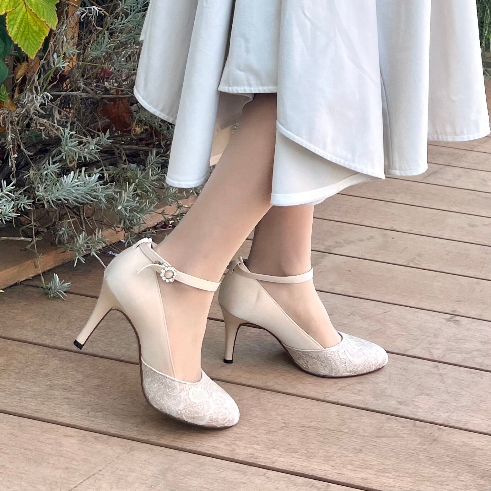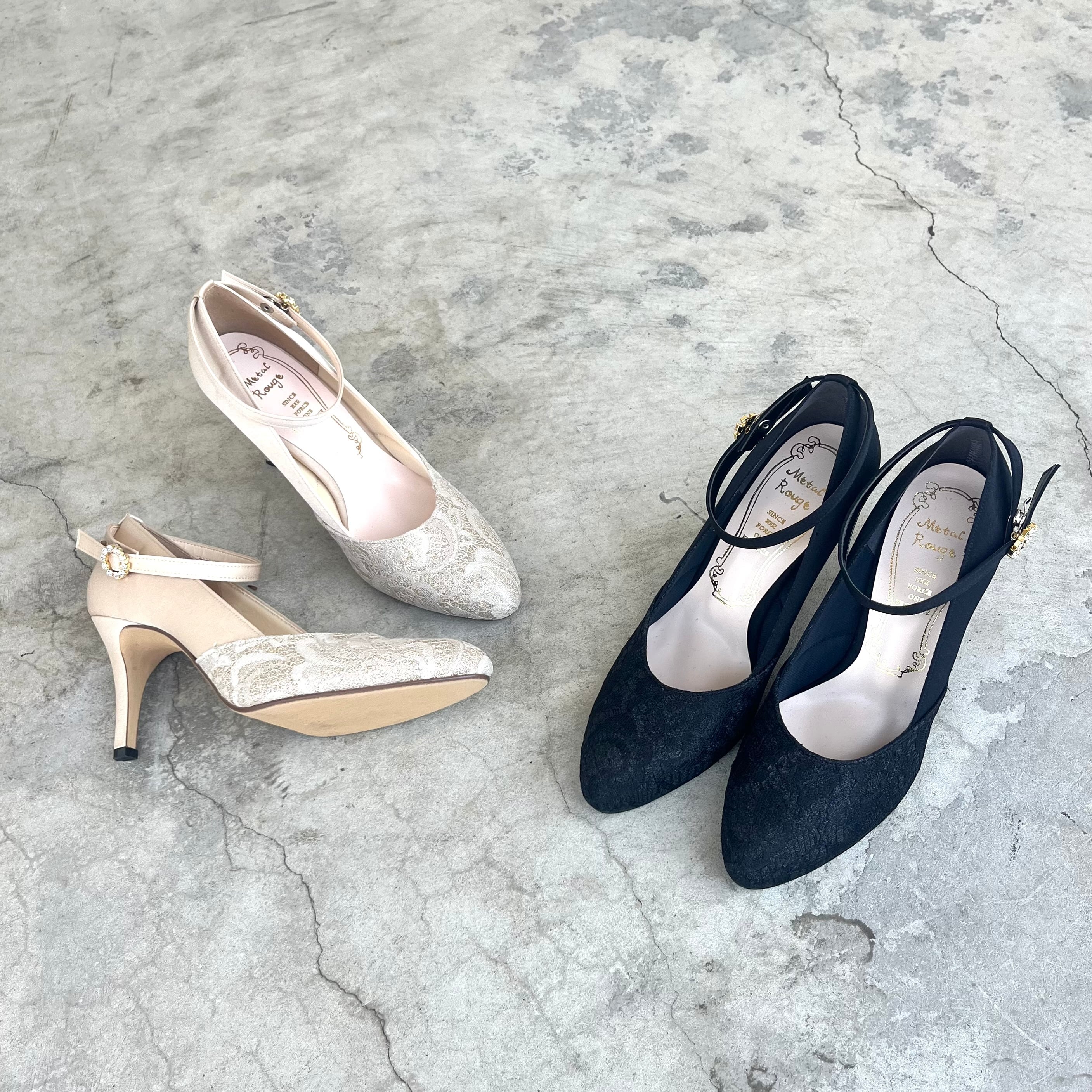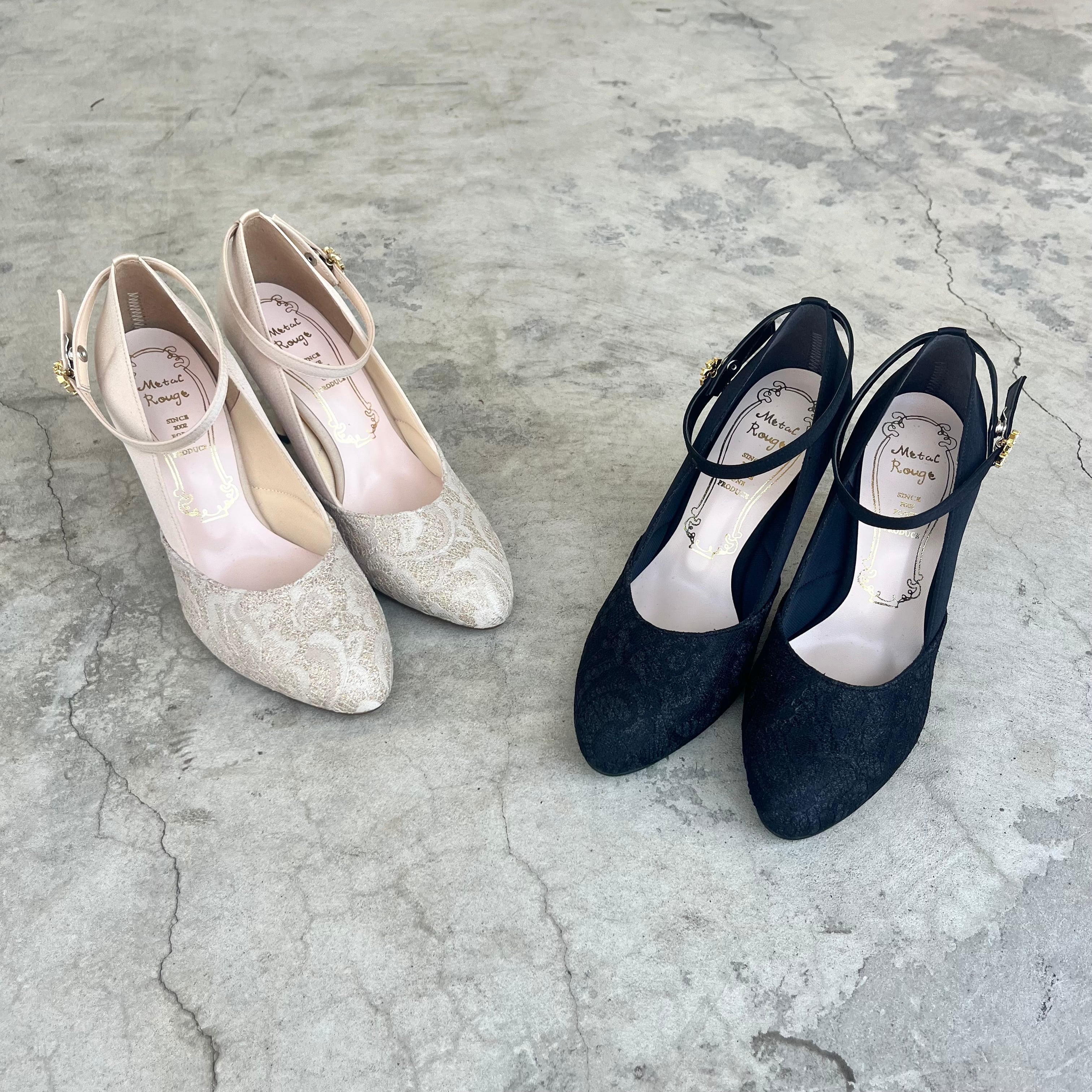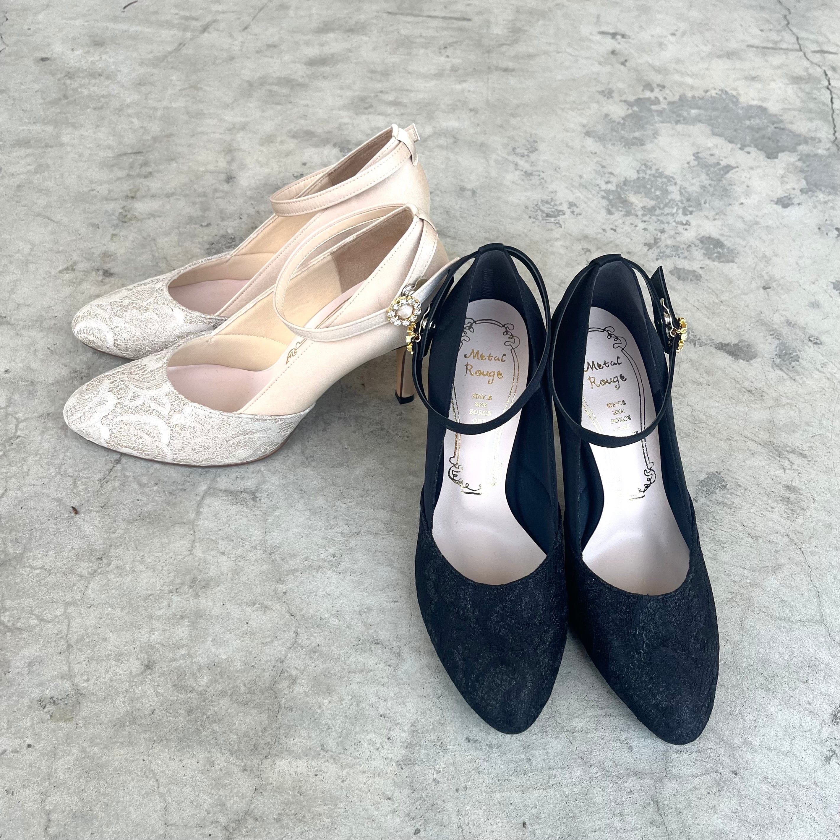 ラメレースストラップパンプス