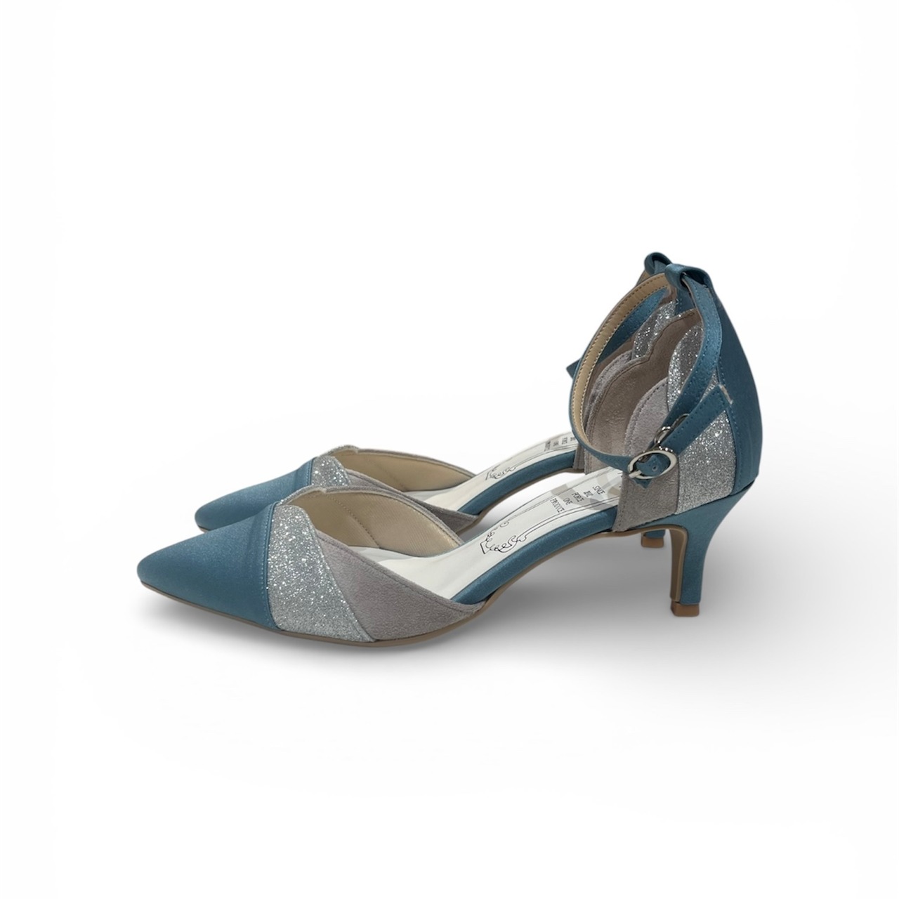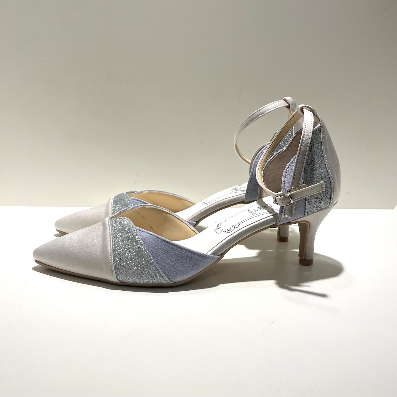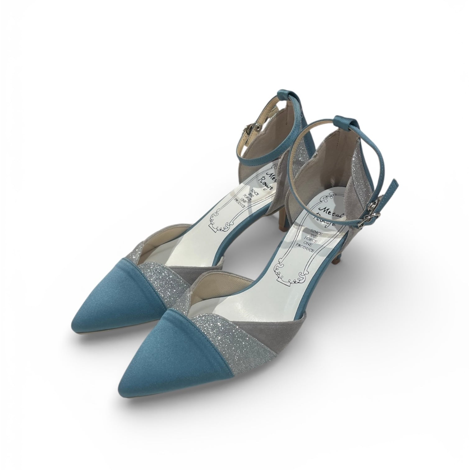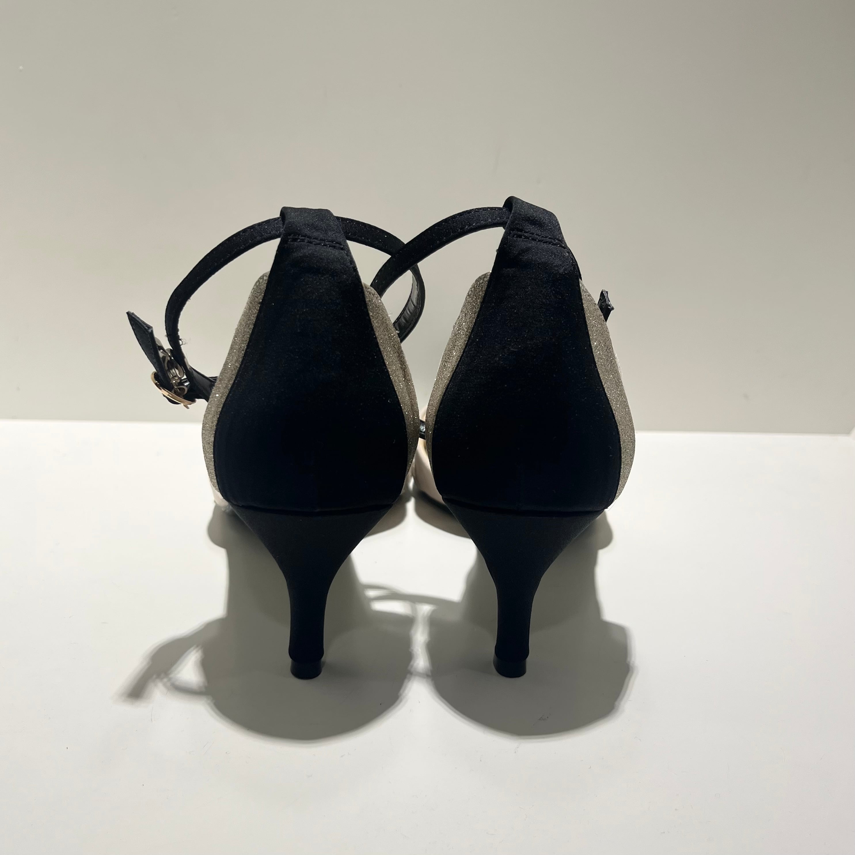 華やかなラメとセパレートデザインが魅力のパンプスです。パーティーなど特別なシーンにぴったりな一足です。また、セパレートデザインにより、足元を美しく見せることで、スタイリッシュな印象を与えます。