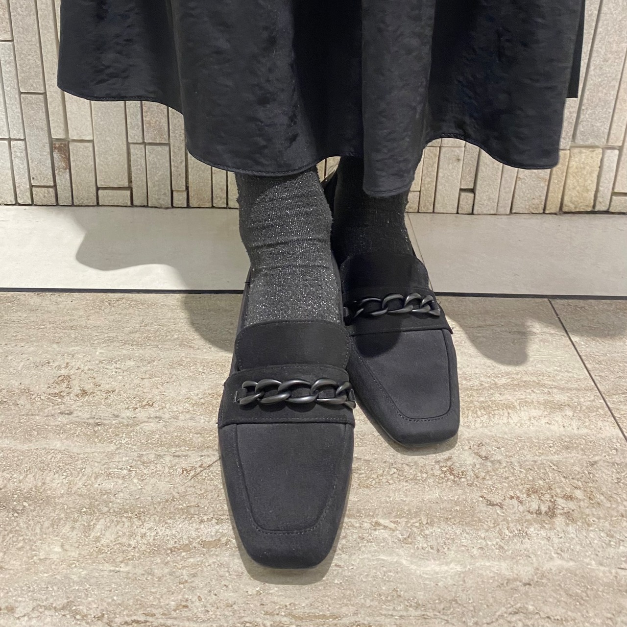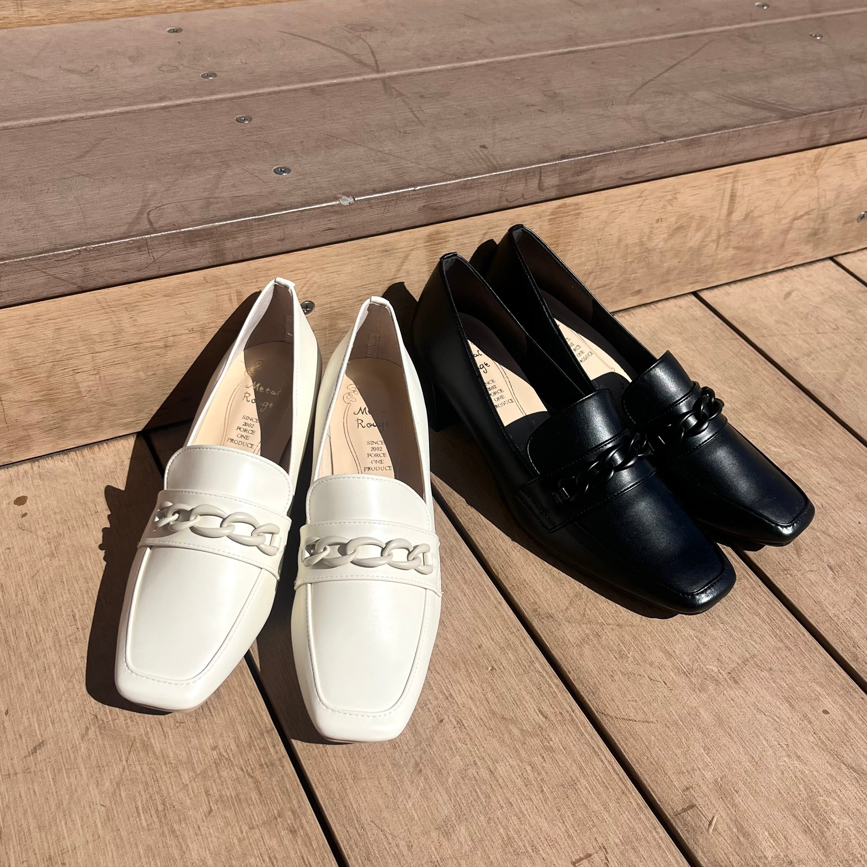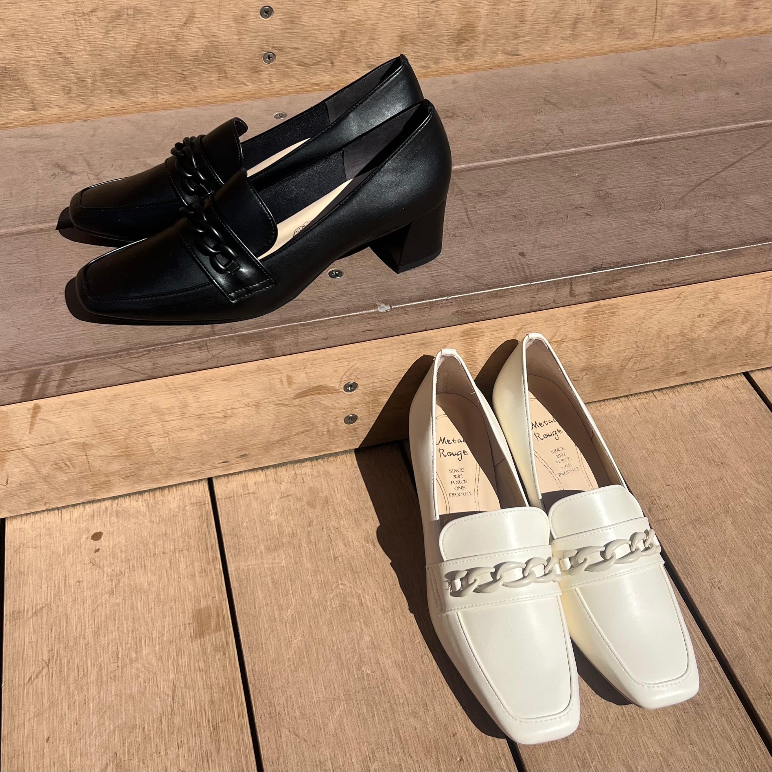 エレガントなデザインが際立つチェーンパンプスです。洗練されたチェーン装飾がスタイルを引き立て、カジュアルからフォーマルまで幅広く活躍します。軽量で履き心地も良く、長時間の着用でも快適に過ごせるのが魅力です。普段のコーディネートに華を添える一足です。