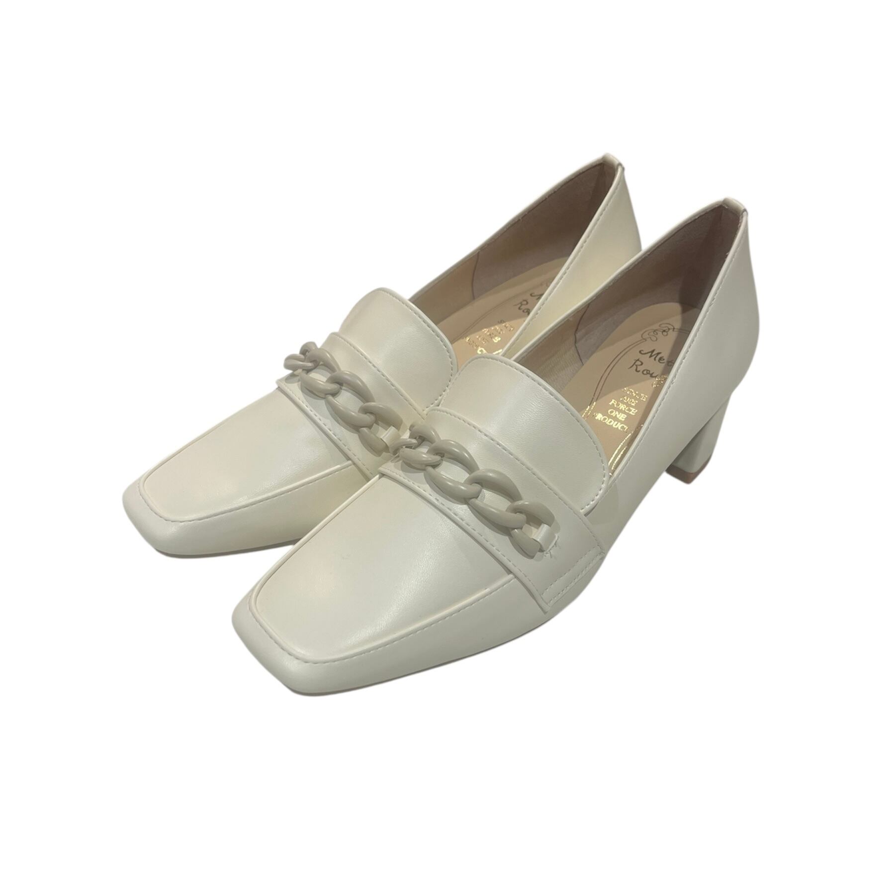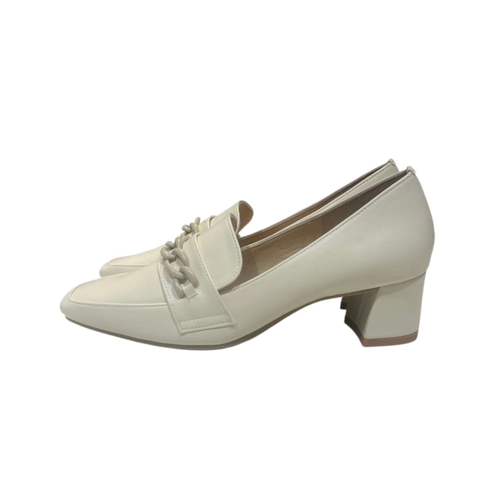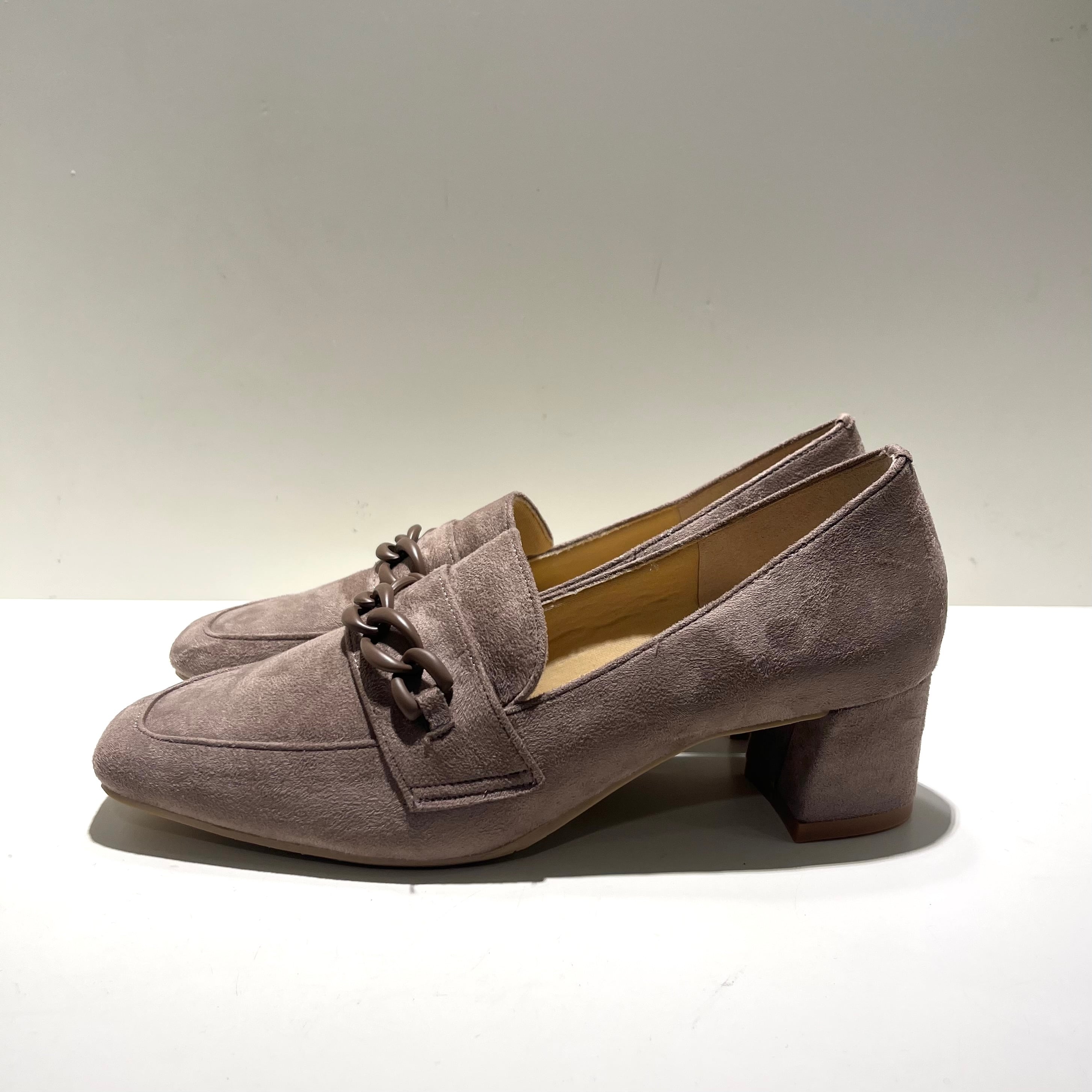 エレガントなデザインが際立つチェーンパンプスです。洗練されたチェーン装飾がスタイルを引き立て、カジュアルからフォーマルまで幅広く活躍します。軽量で履き心地も良く、長時間の着用でも快適に過ごせるのが魅力です。普段のコーディネートに華を添える一足です。