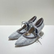 繊細なリボン装飾が足元を華やかに演出し、特別な日から普段使いまで幅広く活躍します。ポインテッドトゥのデザインは、足をシルエットを美しく見せ、スタイリッシュな印象を与えます。軽やかな履き心地で、快適に過ごせるのが特徴です。