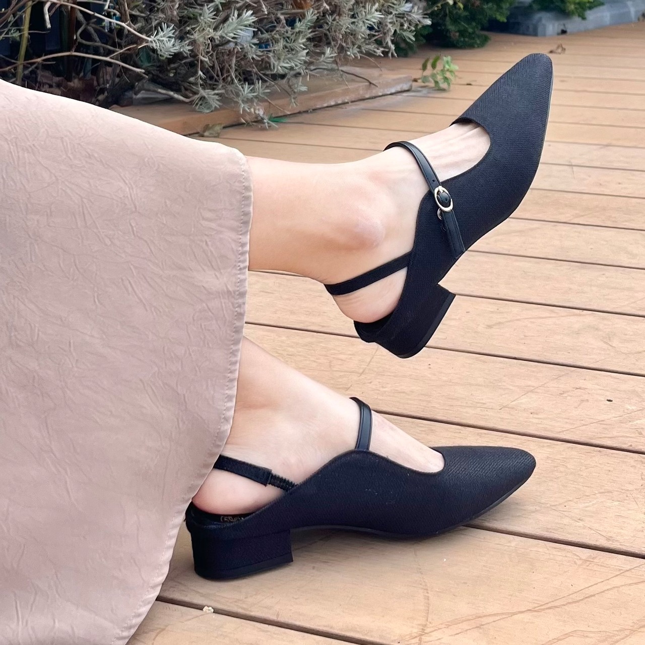 スタイリッシュで機能的なデザインが魅力のローヒールパンプスです。美しいラインとシンプルなフォルムが、どんなシーンにもマッチします。カジュアルな日常使いから、ちょっとしたお出かけまで幅広くお使いいただけます。ラメ素材が足元を明るく見せます。踵はサイドゴム仕様で脱ぎ履きがスムーズです。