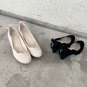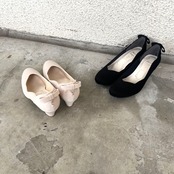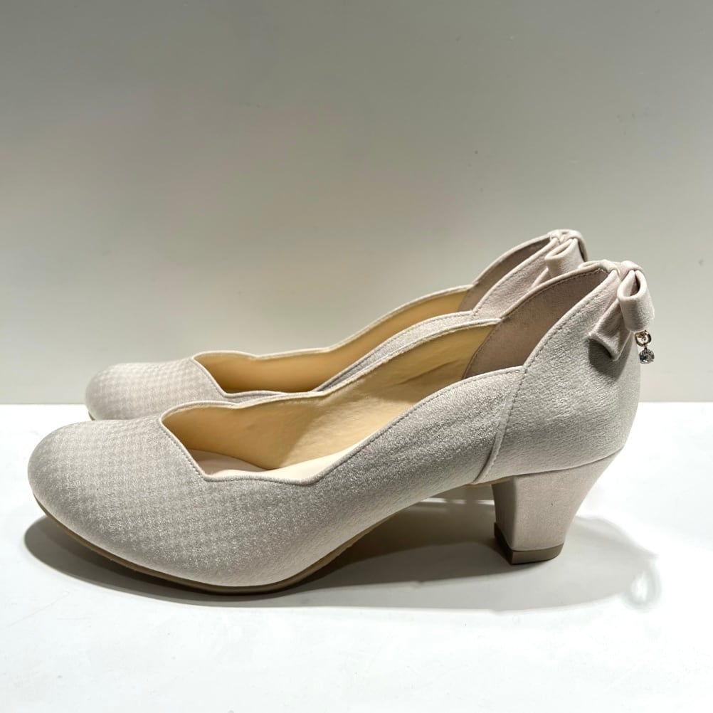 フラワーカットリボンパンプス