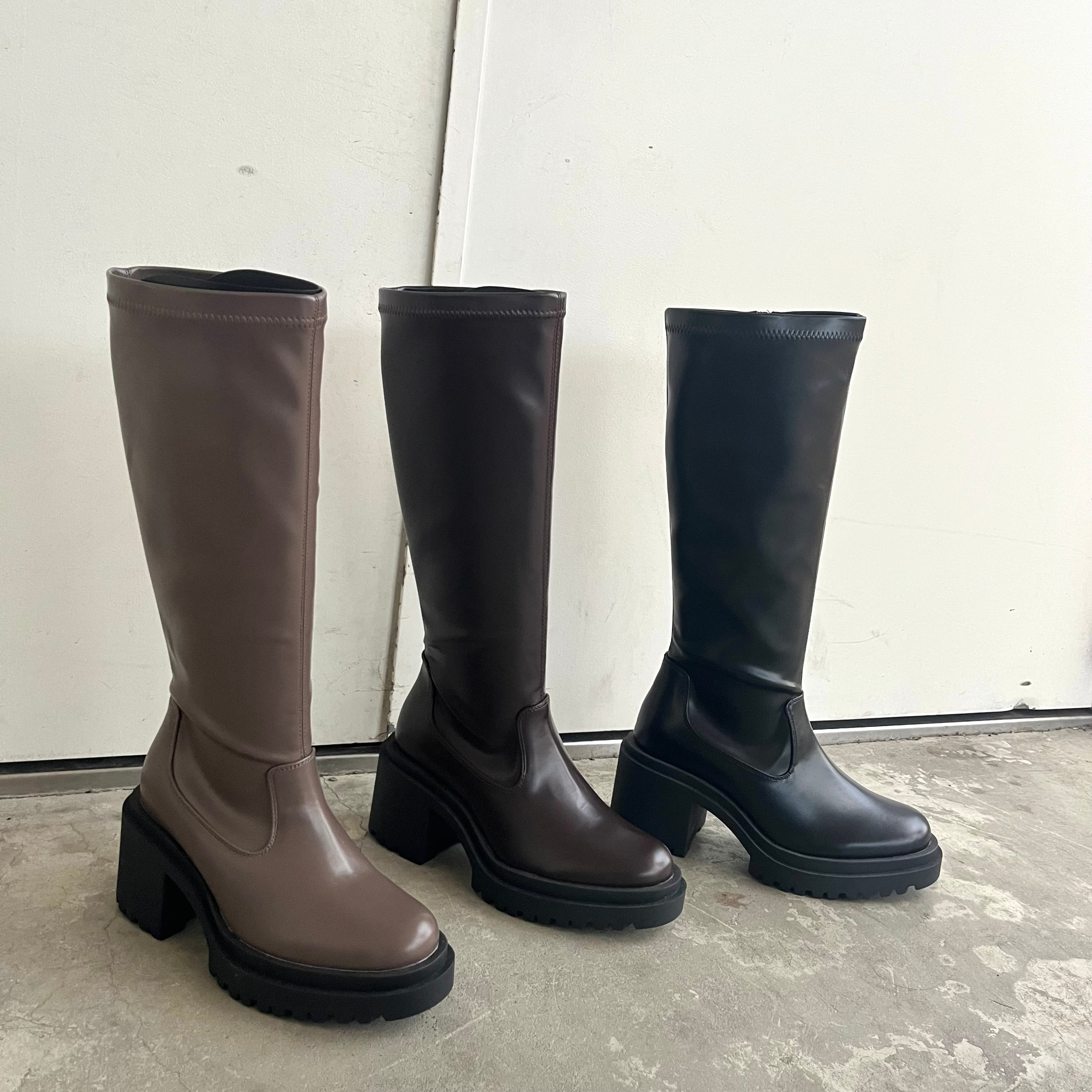 トレンド感満載のボリュームソールブーツは、シンプルでありながらスタイリッシュな魅力を持つ一足です。すっきりとしたシルエットが脚を美しく引き立て、カジュアルからキレイめスタイルまで幅広くコーディネートが楽しめるアイテムとなっています。さらに、柔らかなインソールを採用しており、長時間の着用でも心地よい履き心地を実現しています。