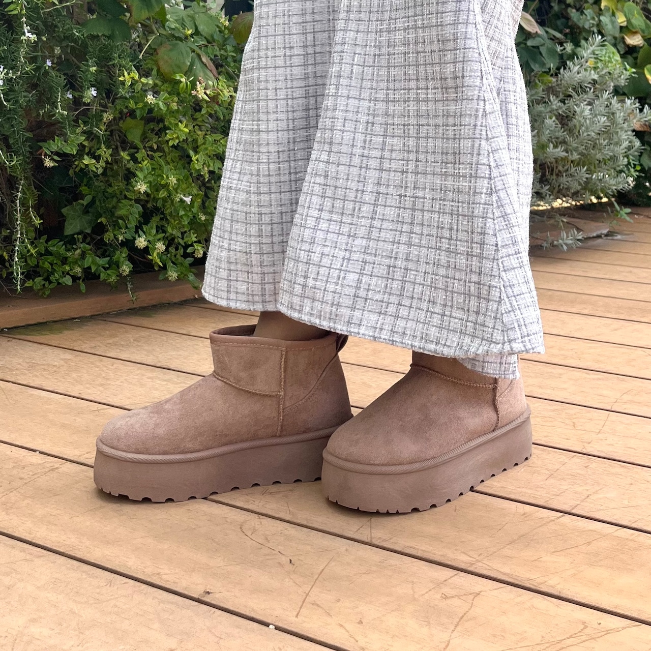 ムートンは、寒いシーズンにぴったりなあったかデザインが特長のアイテムです。インナーファーが足元を包み込み、優れた快適性を実現しています。さらに、厚底ソールによりスタイルアップも叶いコーディネートに華やかさをプラスします。