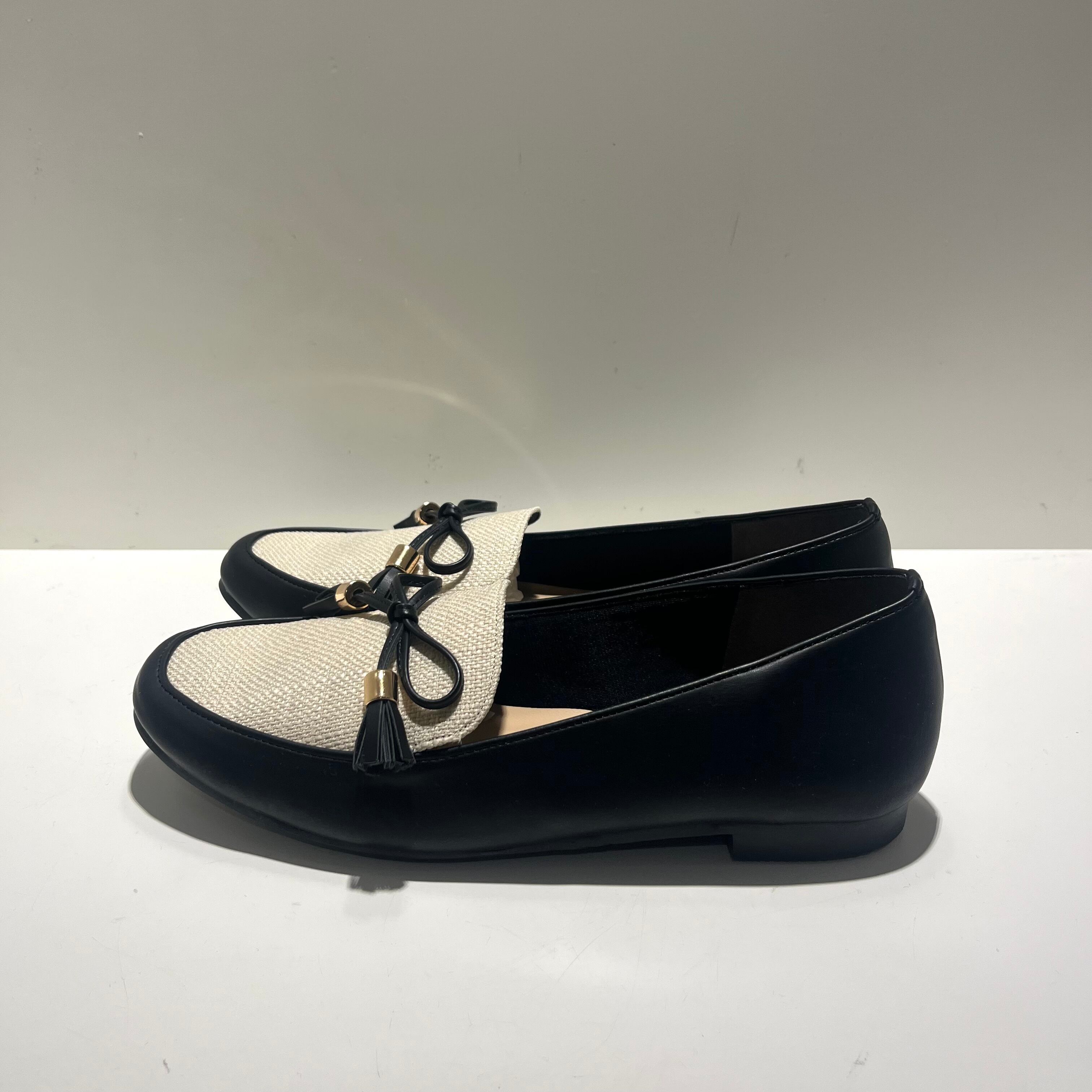 フリンジリボンが施されたデザインが足元を華やかに演出します。クラシックなローファーのシルエットに現代的なアレンジを加え、カジュアルからオフィススタイルまで幅広く活躍します。軽量な素材で作られているため、長時間の着用でも快適に過ごせるよう考慮されています。そして、心地よいインソールが足をしっかりとサポートします。
