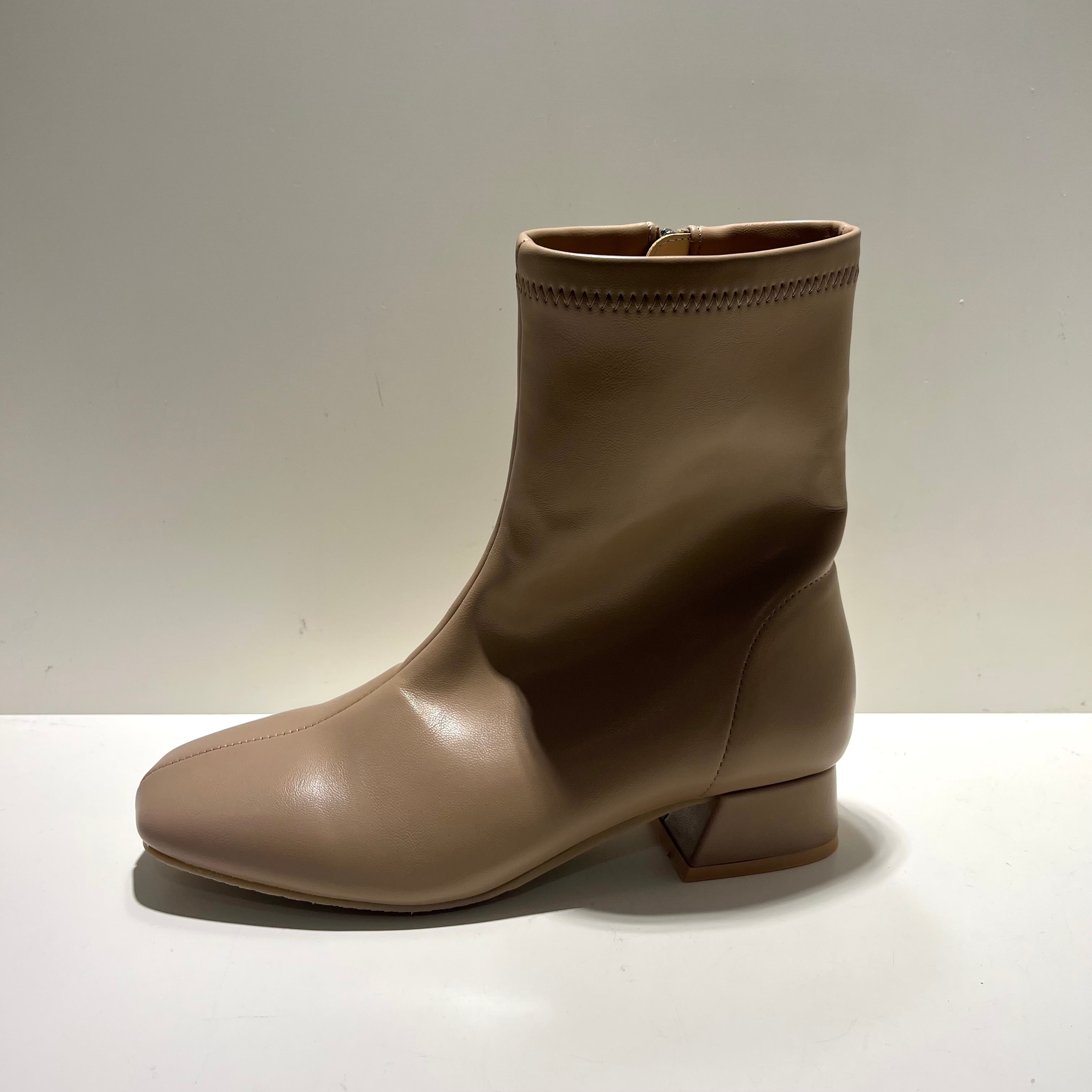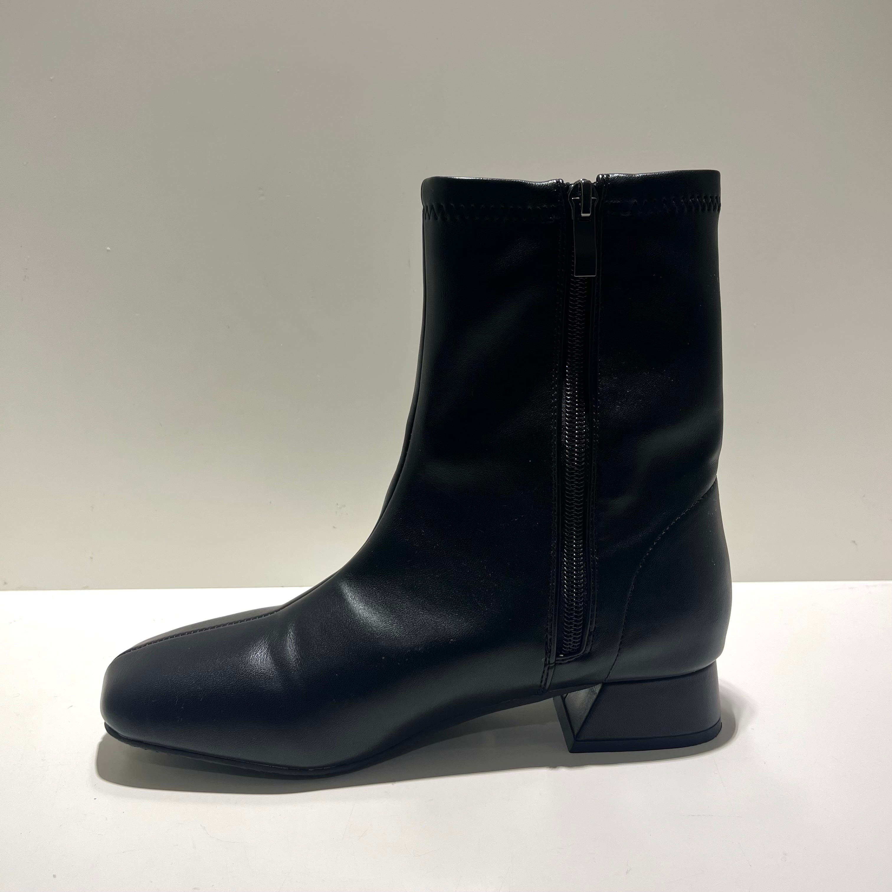シンプルで洗練されたスクエアトゥデザインが魅力の一足です。落ち着いたローヒールが特徴で、長時間の着用でも快適さを保ちながらスタイルを引き立ててくれます。カジュアルな日常使いからフォーマルなシーンまで、幅広いコーディネートに合わせやすいベーシックデザインです。