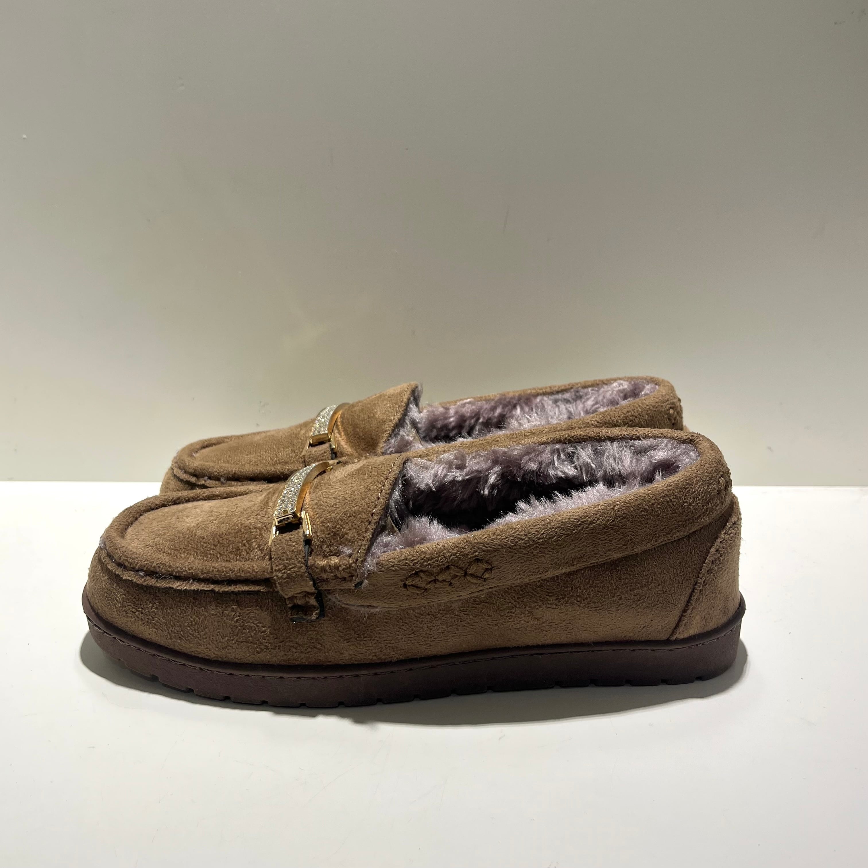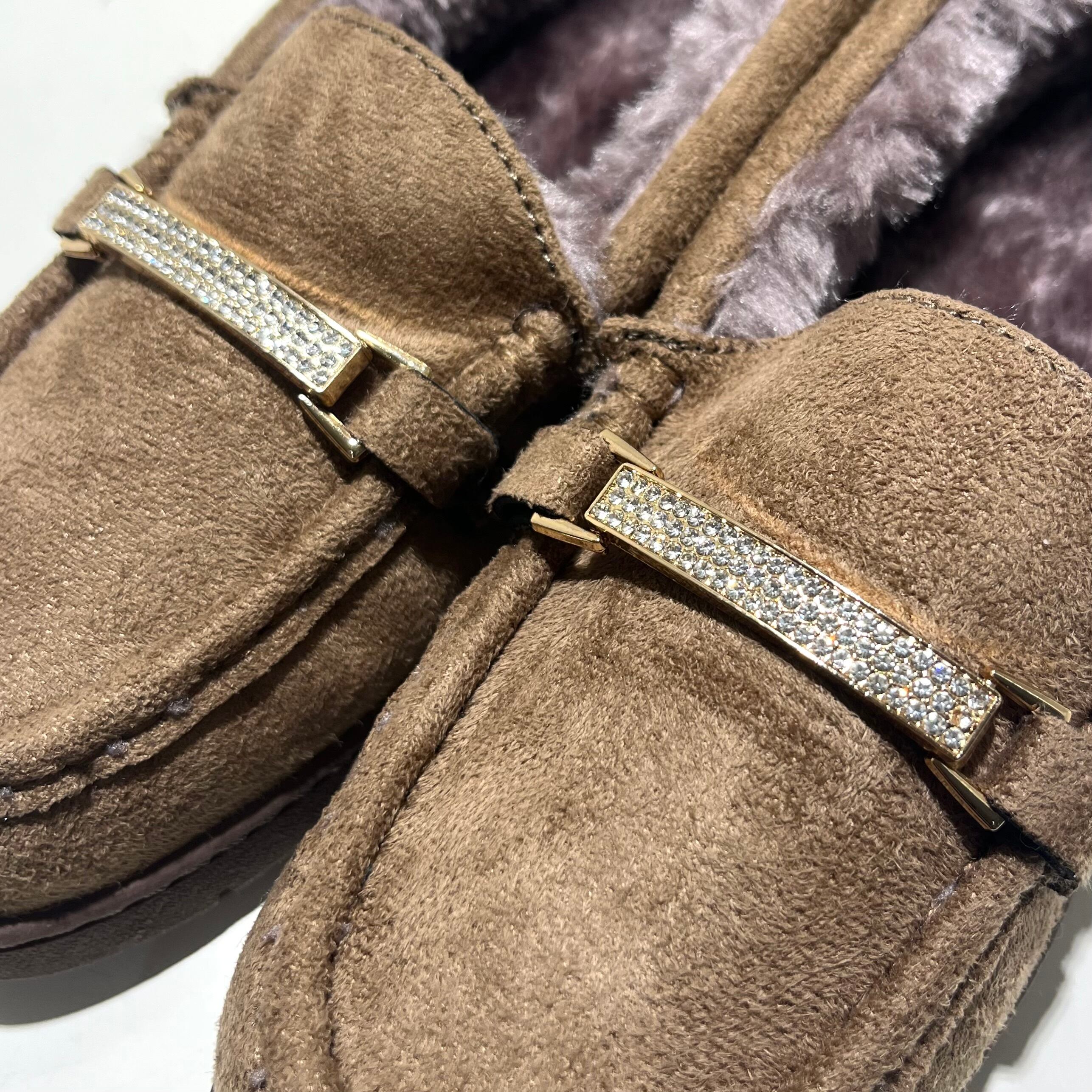 インナーファー付きのモカシンは、寒い季節に特にぴったりなおしゃれアイテムです。暖かさと快適さを両立し、足元を優しく包み込んでくれます。また、ビジューの装飾が華やかさをプラスし、さまざまなコーディネートに彩りを添えます。デイリーユースにも特別な日にも大活躍するアイテムです。