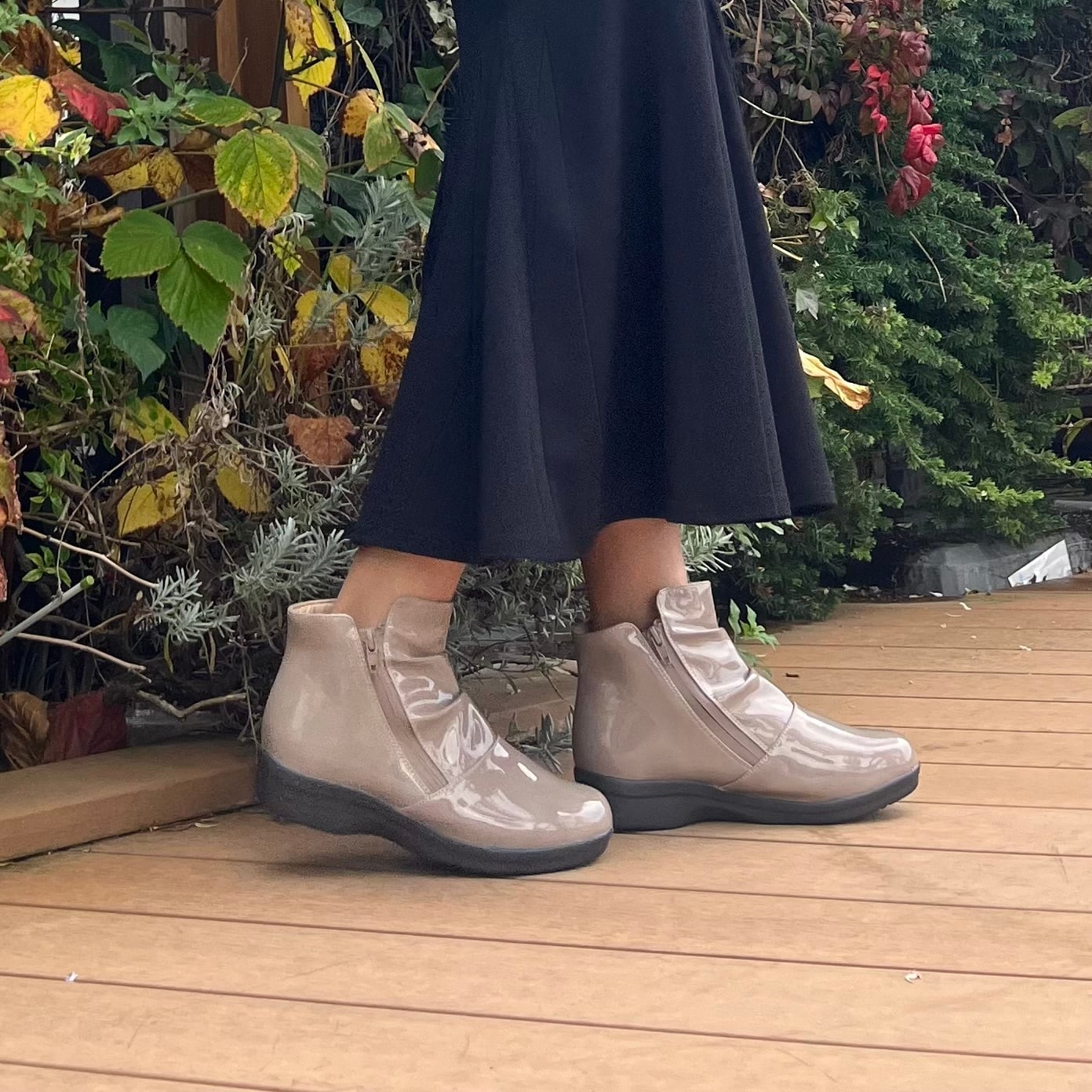 ゆったりとした履き心地が魅力のレインブーツ。横幅が気になる方にも安心の4E設計で、快適さを追求しました。安心して雨や雪の中でもお出かけできます。両サイドにファスナーが付いているので、脱ぎ履きもスムーズです。