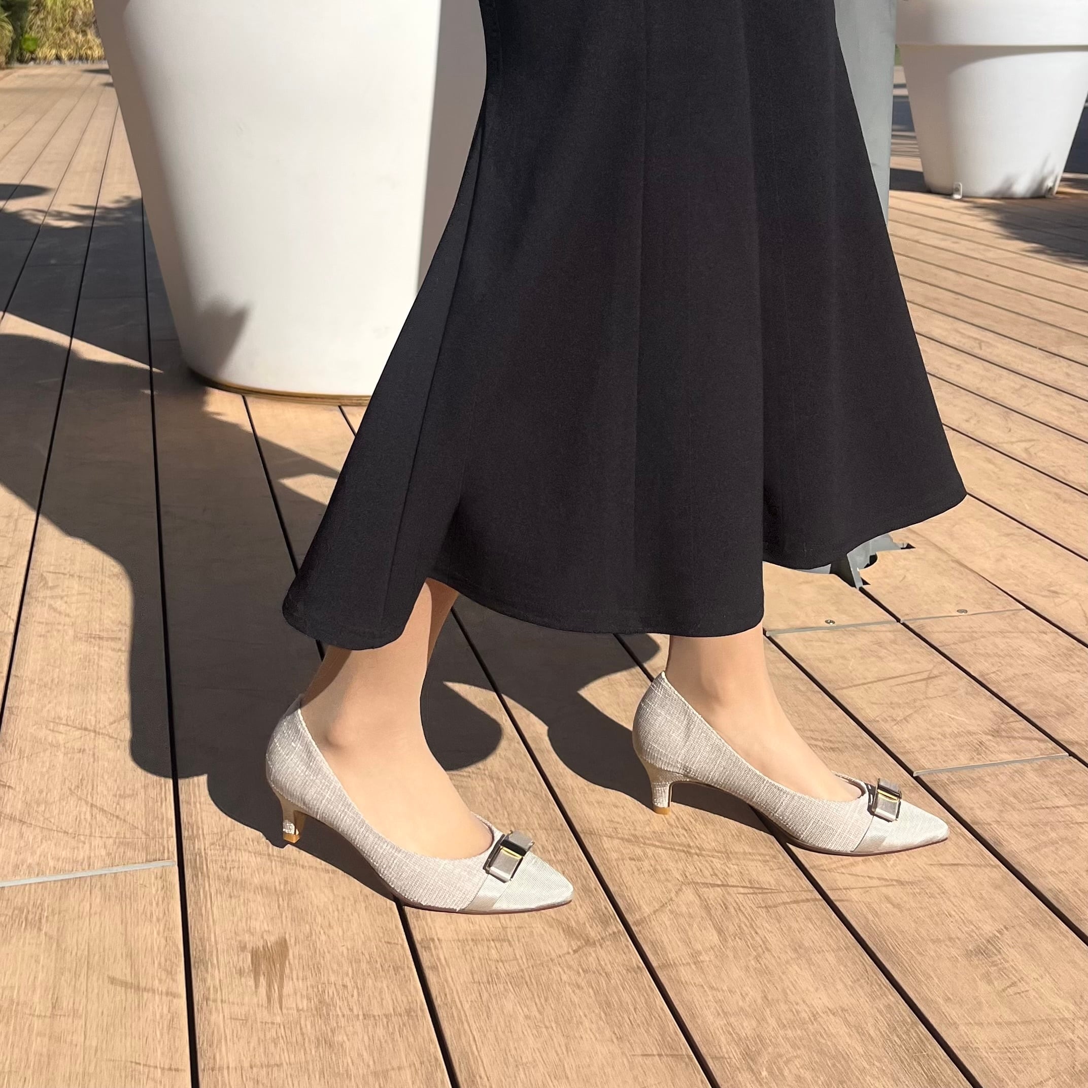 つま先部分に異なる素材を使用したユニークなコンビ仕様が魅力的です。オフィスからカジュアル、セレモニーシーンまで幅広く活躍するアイテムです。きちんと感がありながらも、歩きやすさを追求したデザインとなっています。