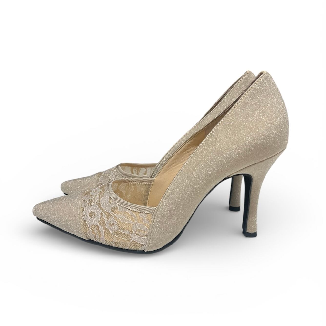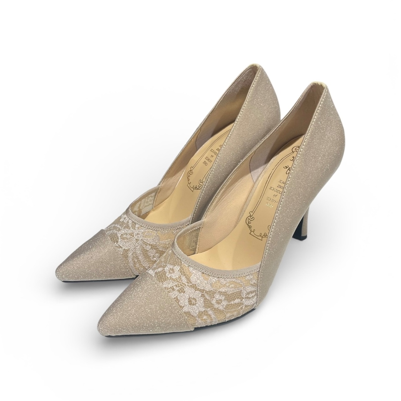 9cmヒールのチュールコンビ仕様で、美脚を演出する洗練されたデザイン。お呼ばれやパーティーといった華やかなシーンにぴったりのアイテムです。コーデに品の良さをプラスし、特別な日をさらに輝かせてくれます。