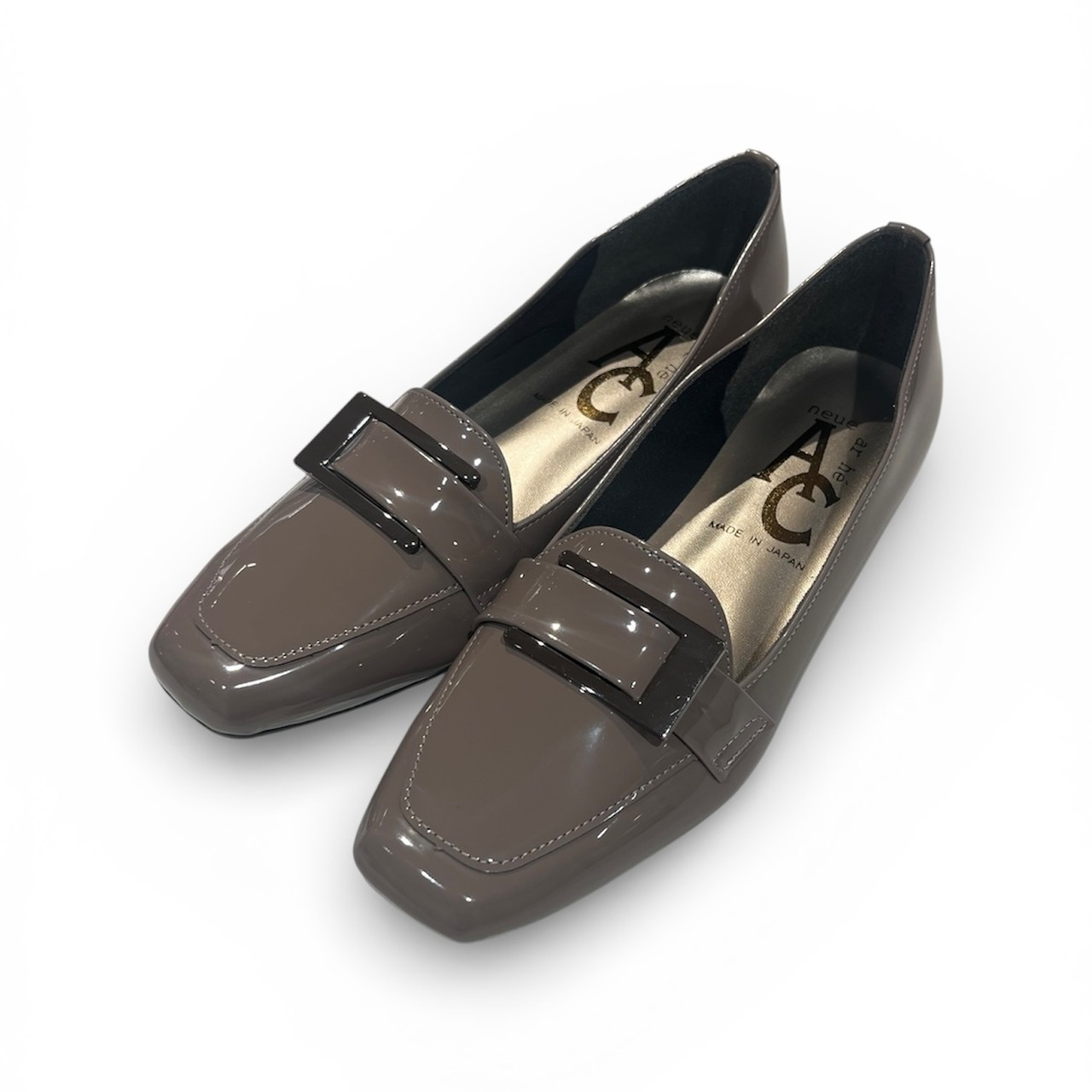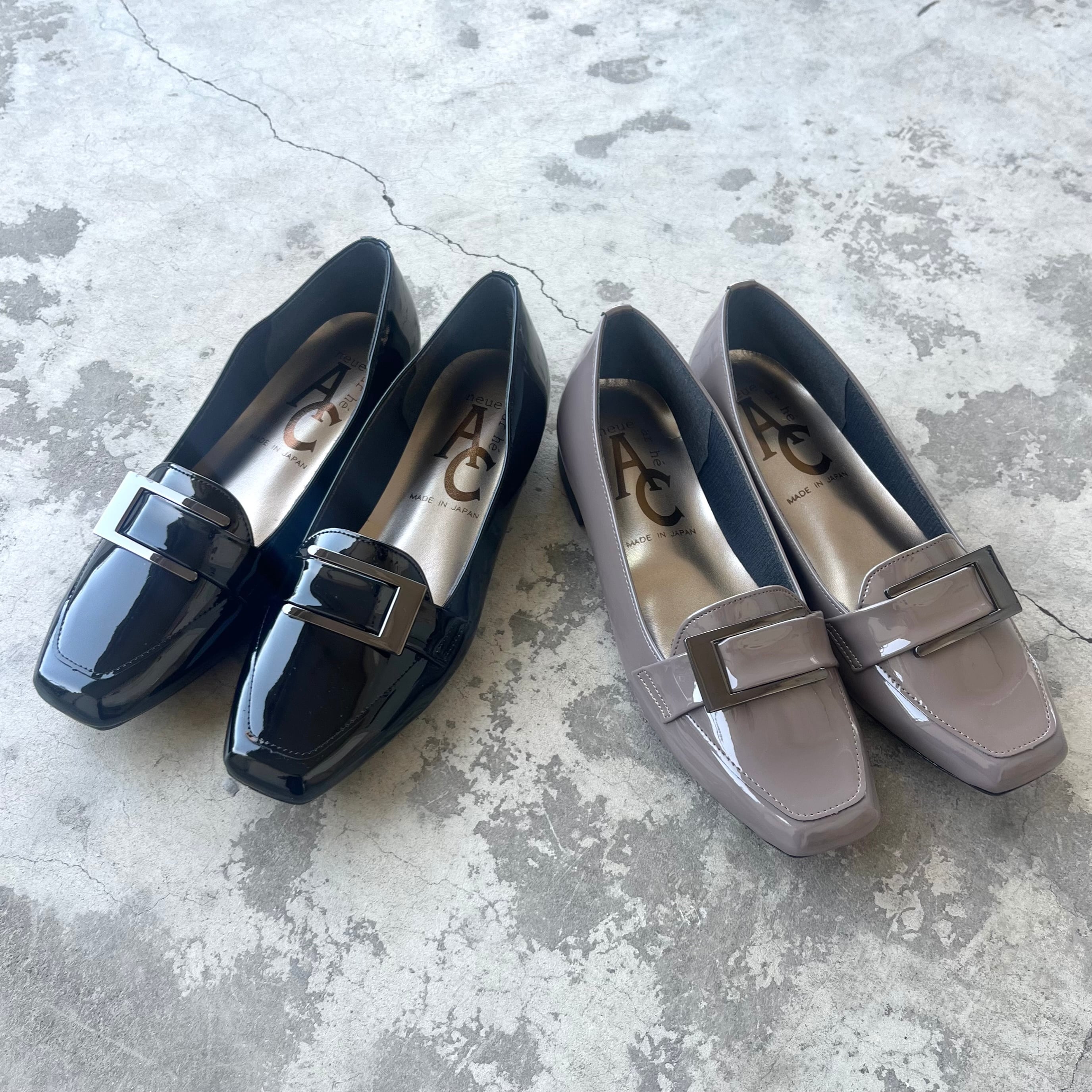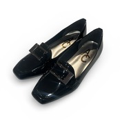 シンプルでありながらエレガントなデザインが特徴のフラットパンプスです。シルバーのバックルがアクセントとなり、カジュアルからオフィススタイルまで幅広く活躍する一足です。2.5cmのヒールで、歩きやすさとスタイルの両方を実現しています。
