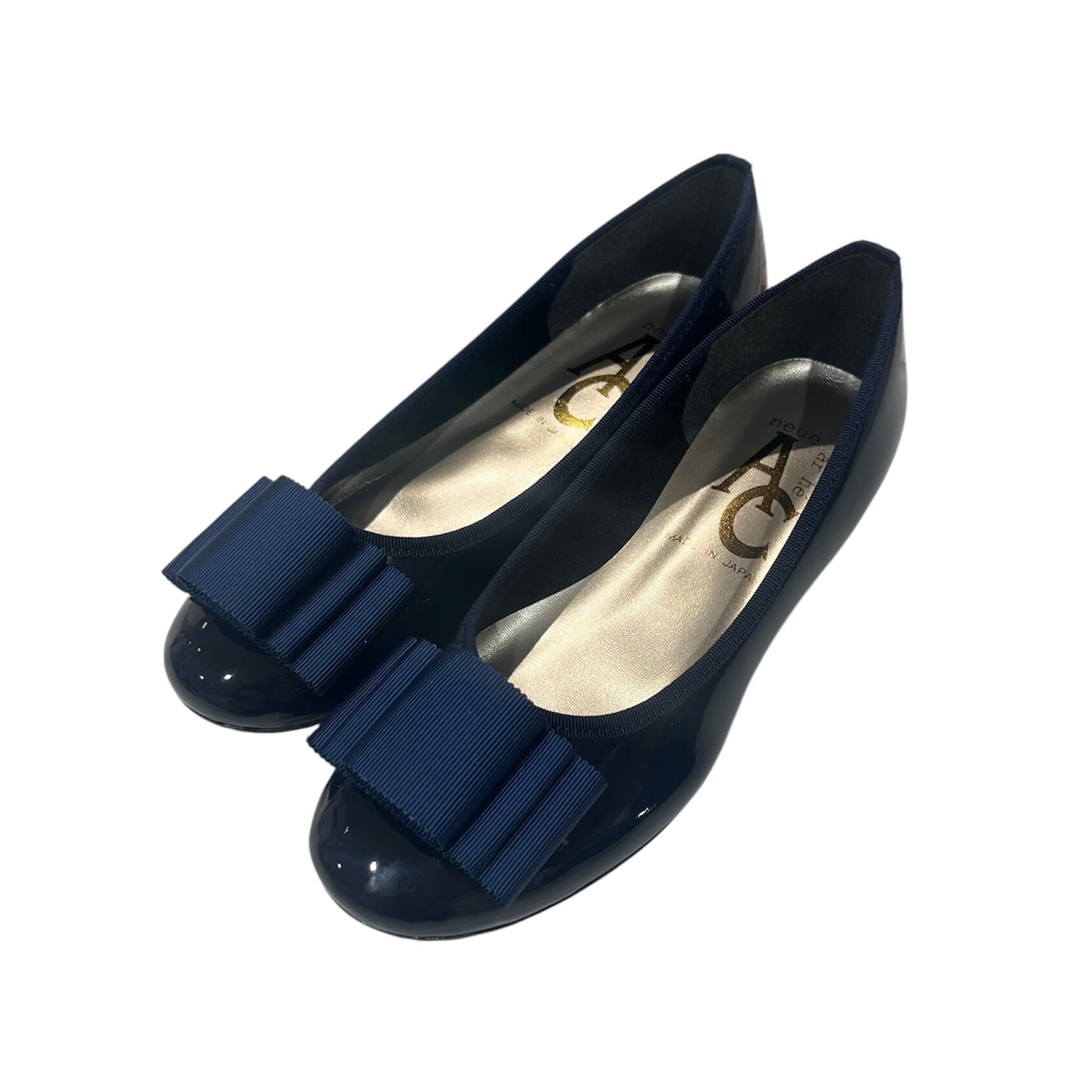 【やさしい靴】平リボンフラットパンプス