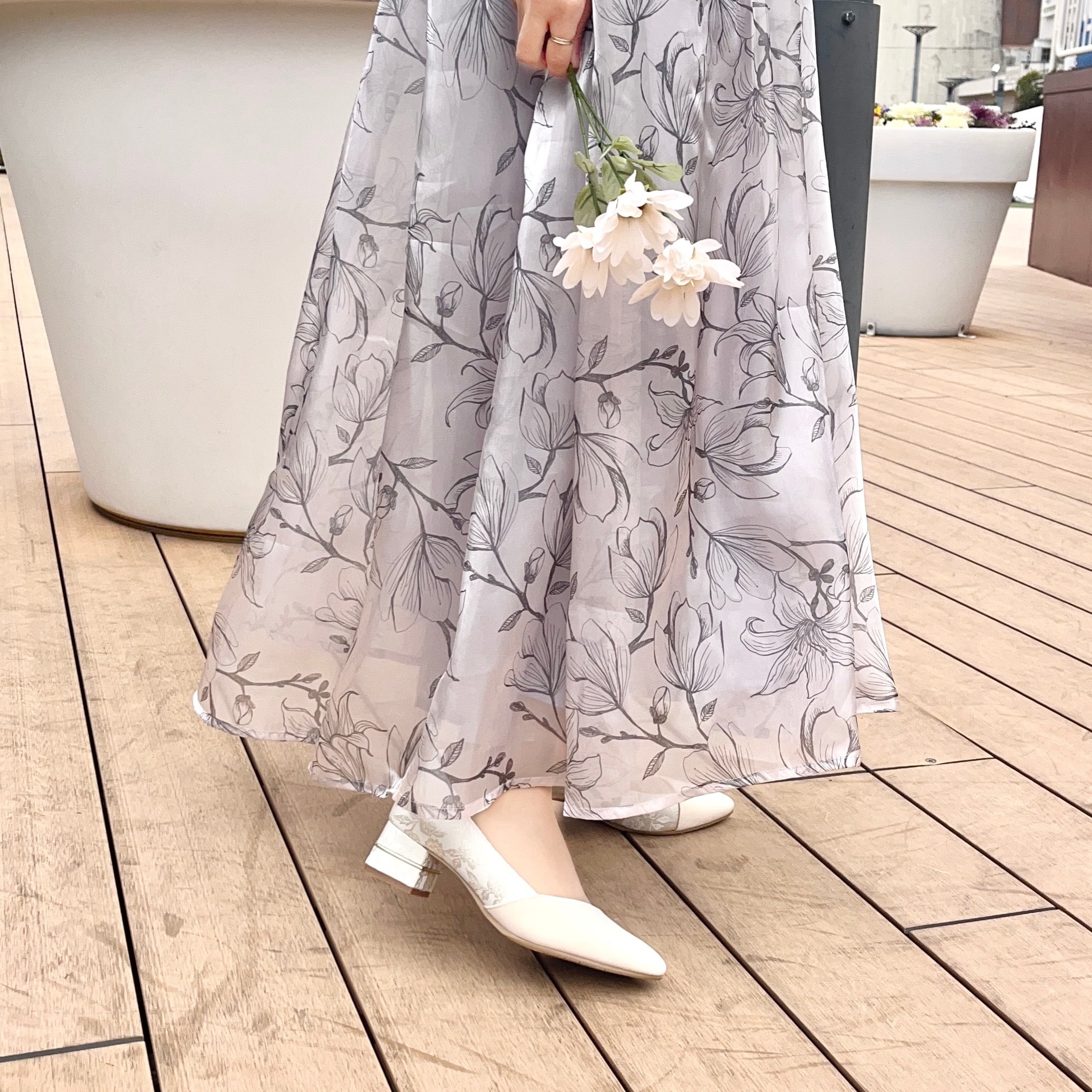 異素材を組み合わせたデザインに、踵のゴールドラインがアクセントとなり、トレンド感あふれる一足に仕上がっています。斜めカットデザインは足元を美しく見せ、オシャレな印象を与えます。カジュアルからきれいめコーデまで幅広く合わせられ、デイリーユースにもおすすめです。