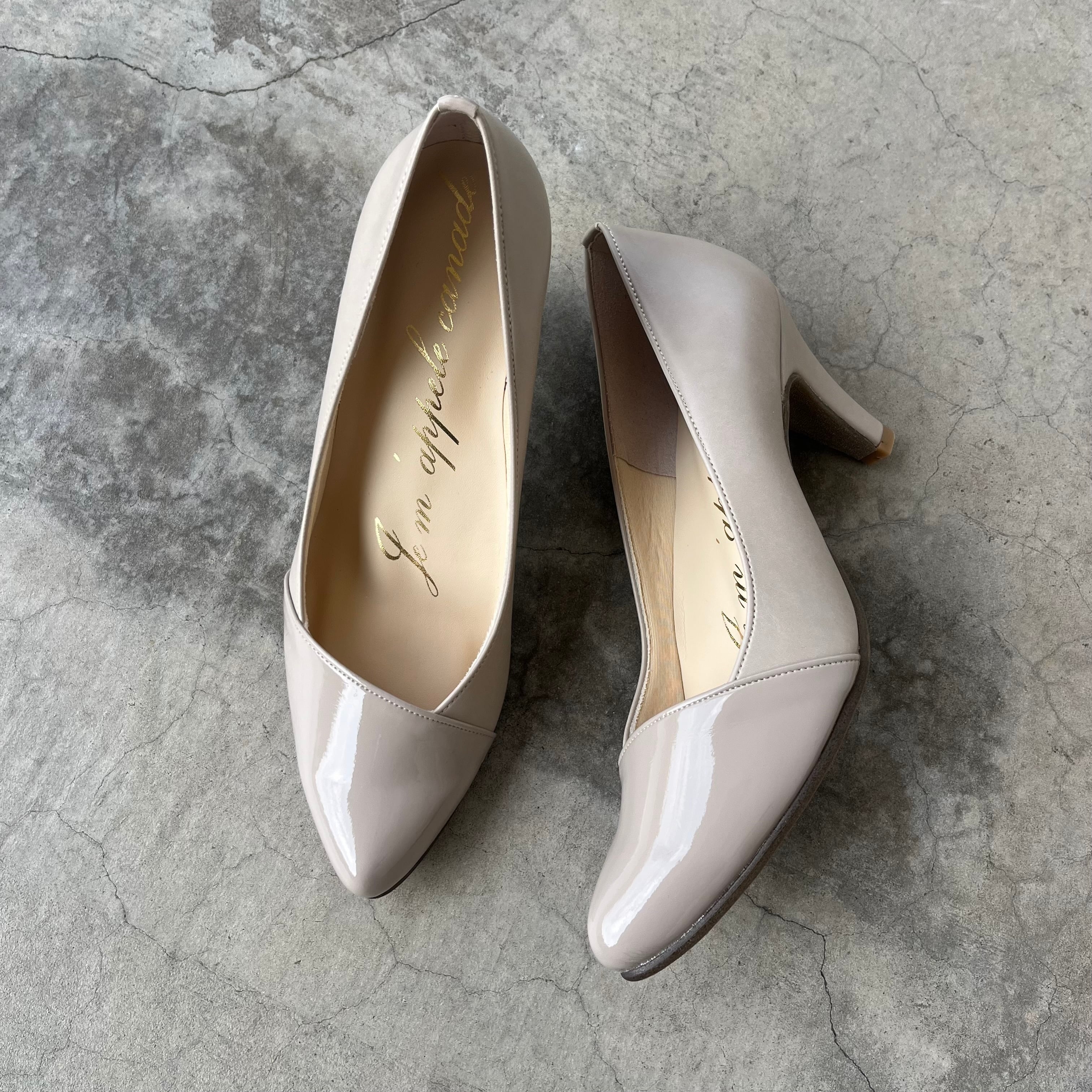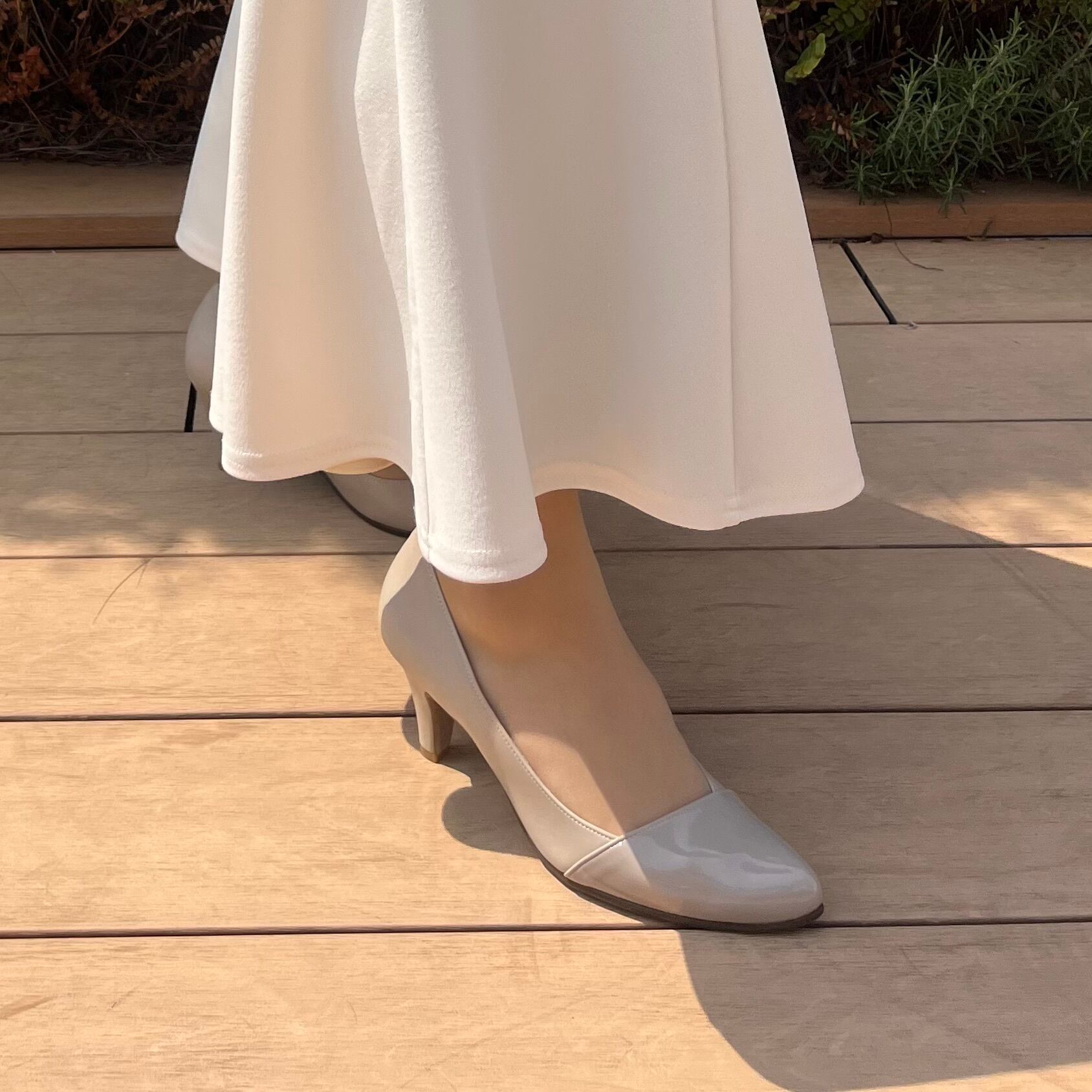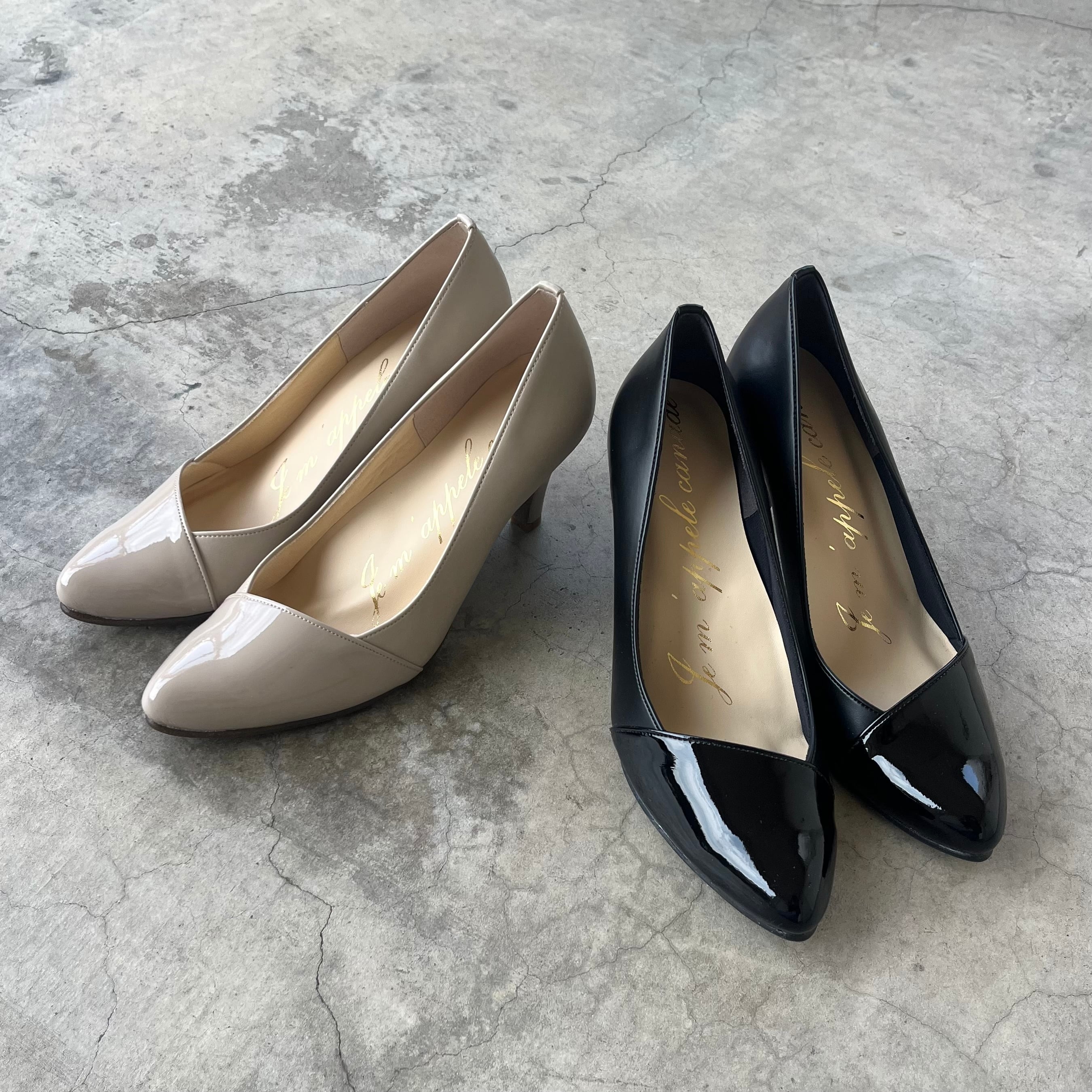 おしゃれな素材切り替えが特徴のエナメルコンビパンプスは、スタイリッシュな7cmヒールを採用し、シルエットが美しく、エレガンスを引き立てます。多彩なコーディネートに合わせやすく、特別な日から普段使いまで幅広く活躍する一足です。歩きやすさも兼ね備えたデザインで、上品な印象を与えます。