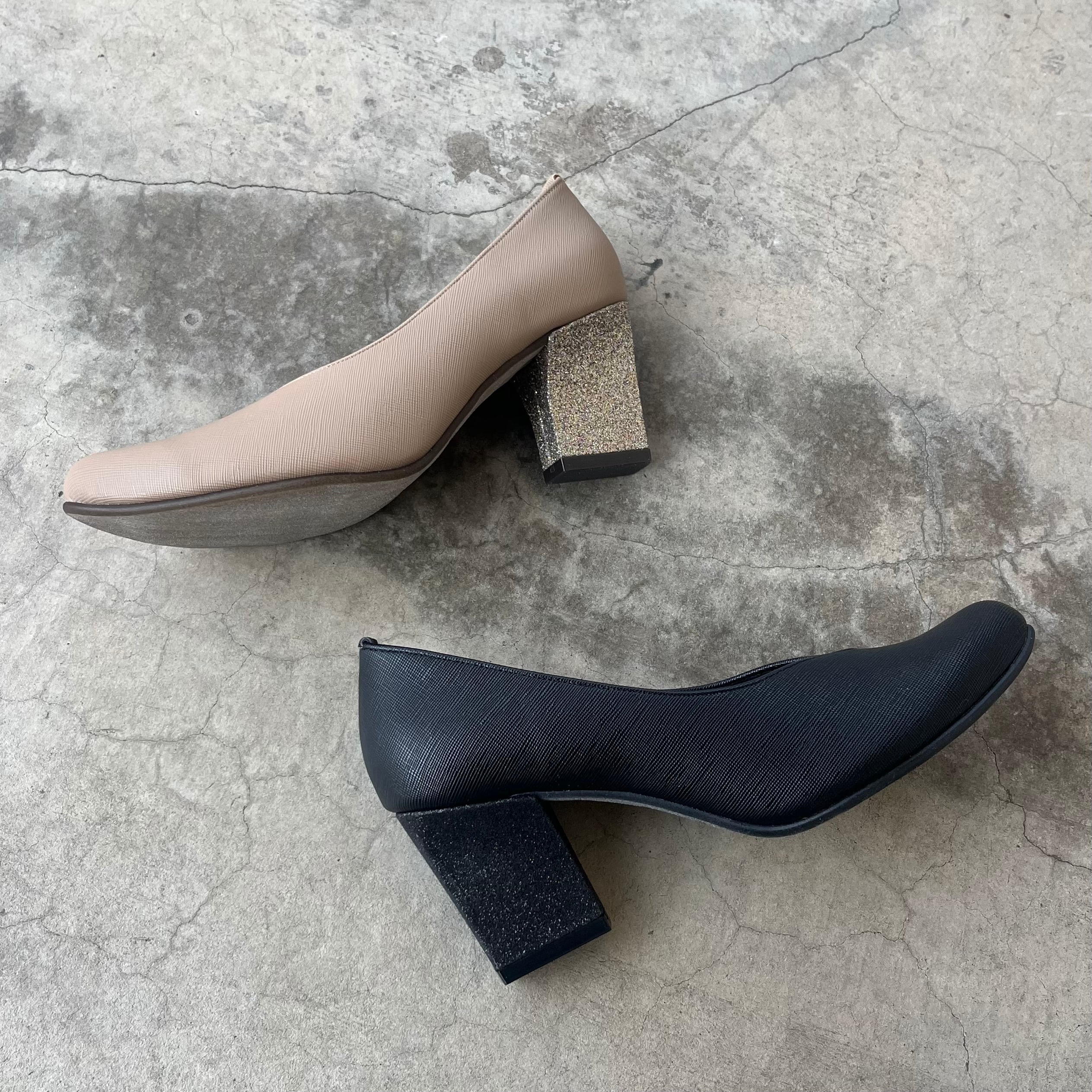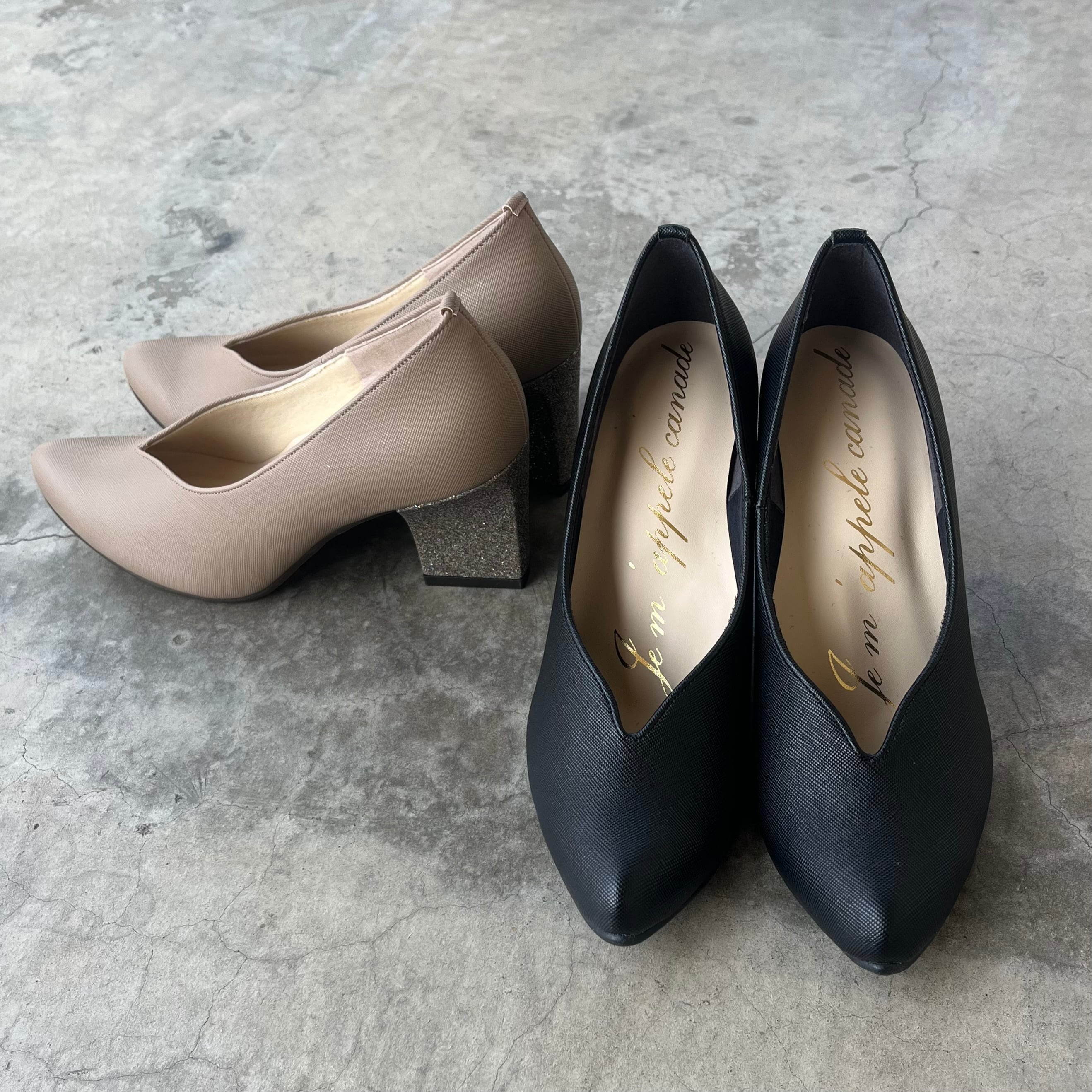 【ジュマペルカナデ】グリッターヒールVカットパンプス