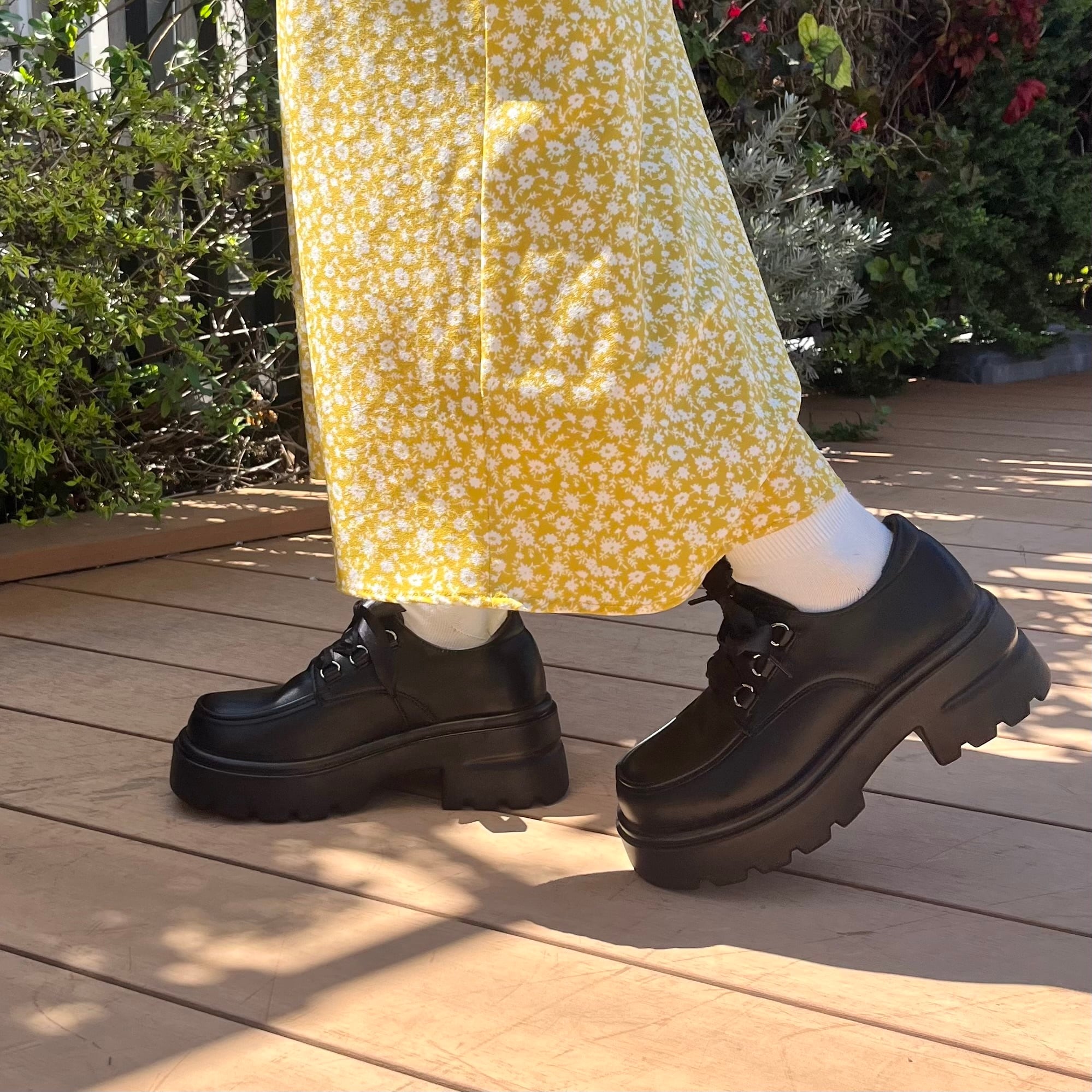 ボリュームソールレースアップシューズは、スタイルアップを実現する厚底デザインが魅力の一足です。カジュアルからフェミニンまで多彩なコーディネートにマッチします。付け替え可能な紐も付いており、シーンに合わせて楽しめるのがポイント!普段使いやお出かけにぴったりなアイテムです。